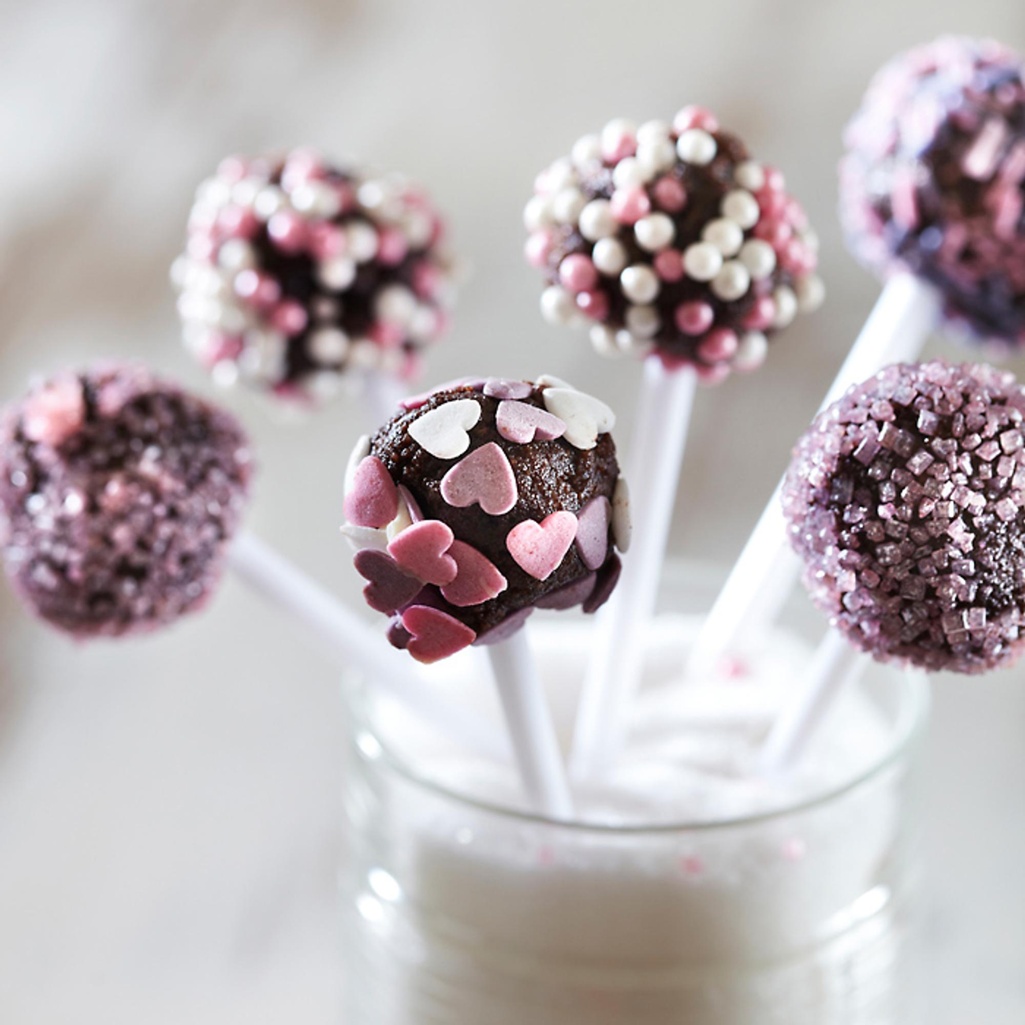 Pyörittele taikinasta pieniä palloja ja työnnä ne tikkaritikkuihin. Kiepauta leivokset strösseleissä ja asettele ne pystyyn sokerilla täytettyyn lasiin. Anna jähmettyä jääkaapissa pari tuntia. Säilytä jääkaapissa.