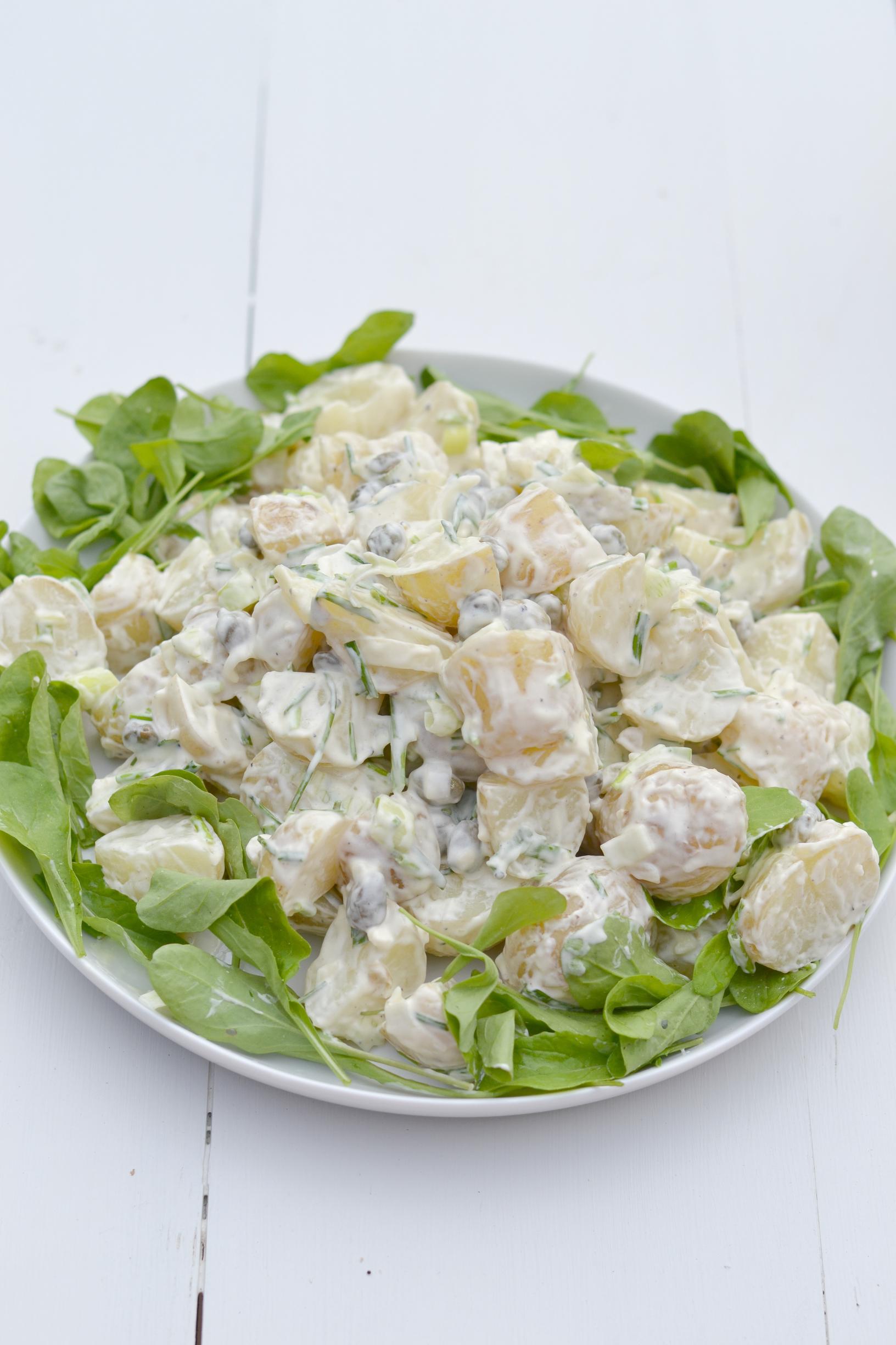 - Anna perunasalaatin maustua vähintään puolituntia ennen tarjoilua. Tarjoa perunasalaatti rucolan kera.