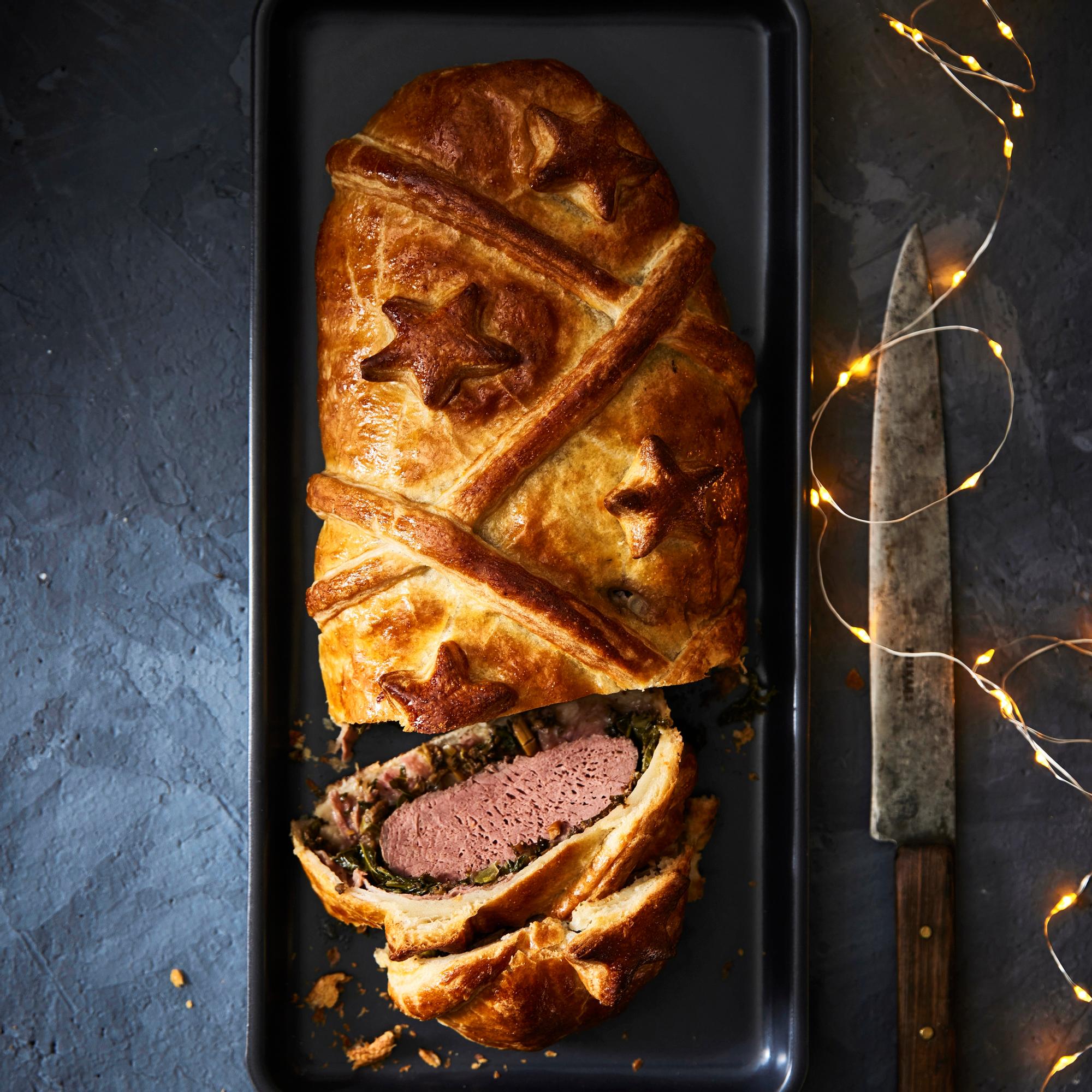 Maailmanlaajuinen klassikko maistuu myös riistasta valmistettuna! Peuranfilee paistuu meheväksi taikinakuoren alla, lehtikaali-sieniseoksella höystettynä.