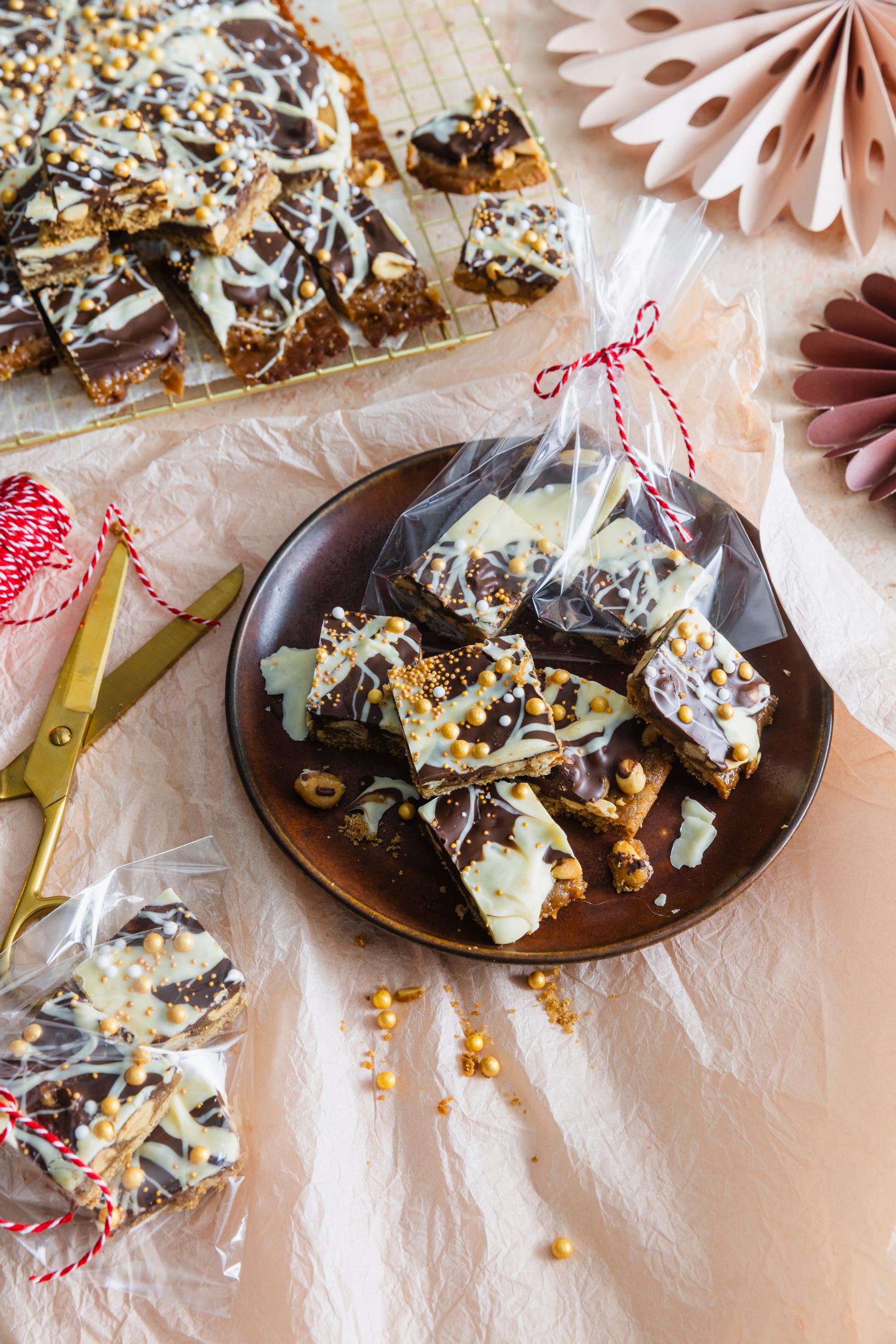 Piparisnickers – toffeen, suolapähkinöiden ja suklaan liitto saa jouluisen säväyksen piparkakkupohjasta