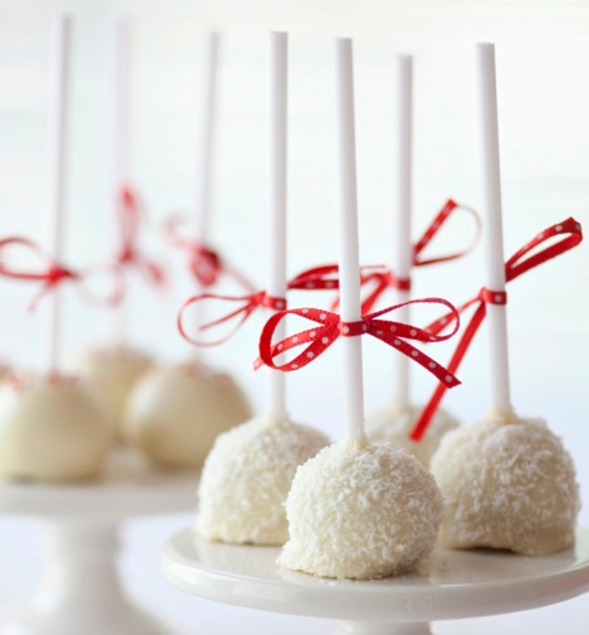 4. Kasta tikkujen toista päätä hieman sulaan valkosuklaaseen ja työnnä tikku piparipallon sisään. Kun kaikki tikut ovat valmiita, nosta ne jääkaappiin ainakin 15 minuutin ajaksi.