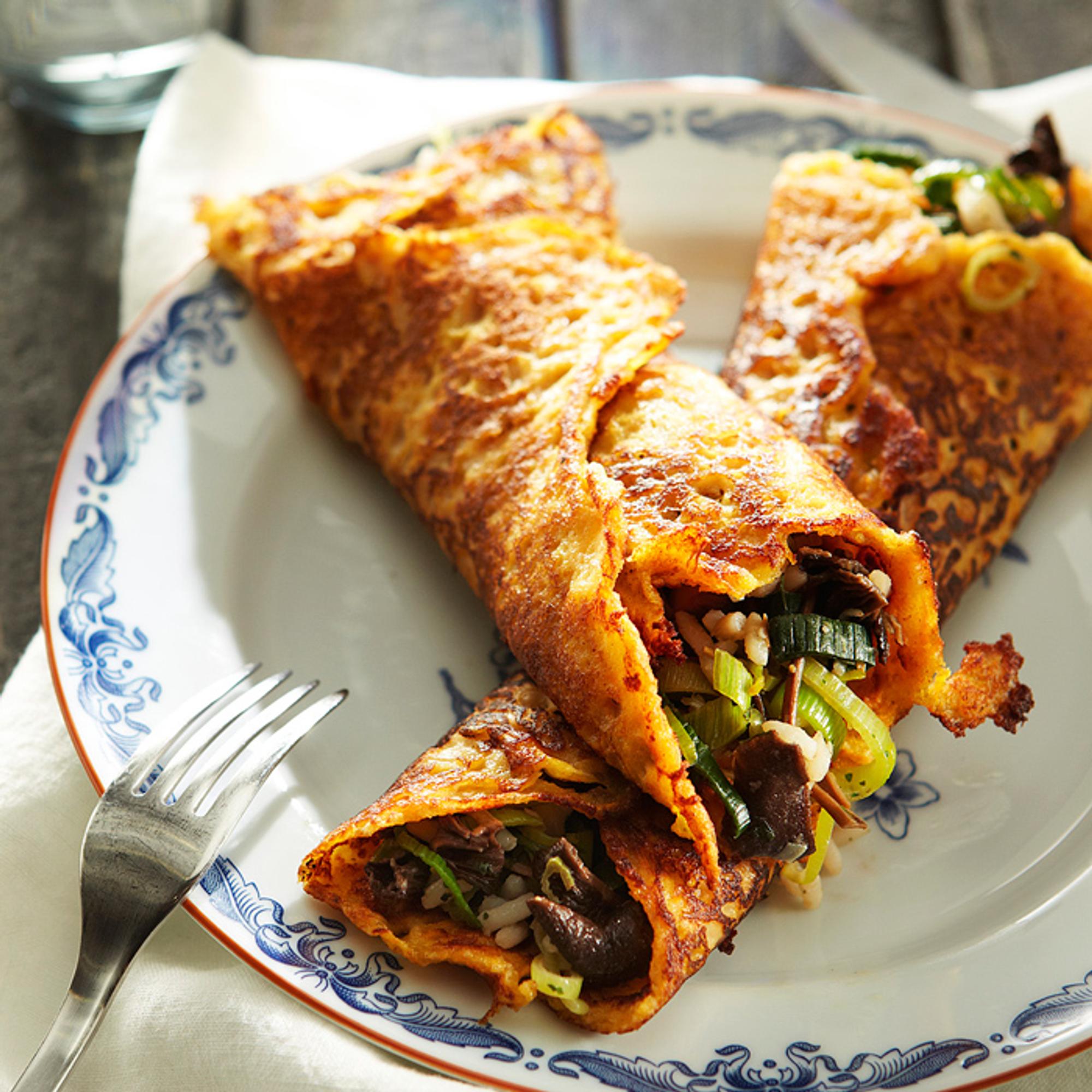 - Puhdista ja paloittele sienet. Halkaise, huuhdo ja hienonna purjo. Kuullota purjot öljyssä paistokasarissa. Lisää sienet ja paista ahkerasti käännellen, kunnes suurin osa nesteestä on haihtunut. Kumoa joukkoon riisi ja mausteet. Paista käännellen, kunnes sienitäyte on kuumaa. Tarjoa porkkanaohukaisten sienitäytteenä.
