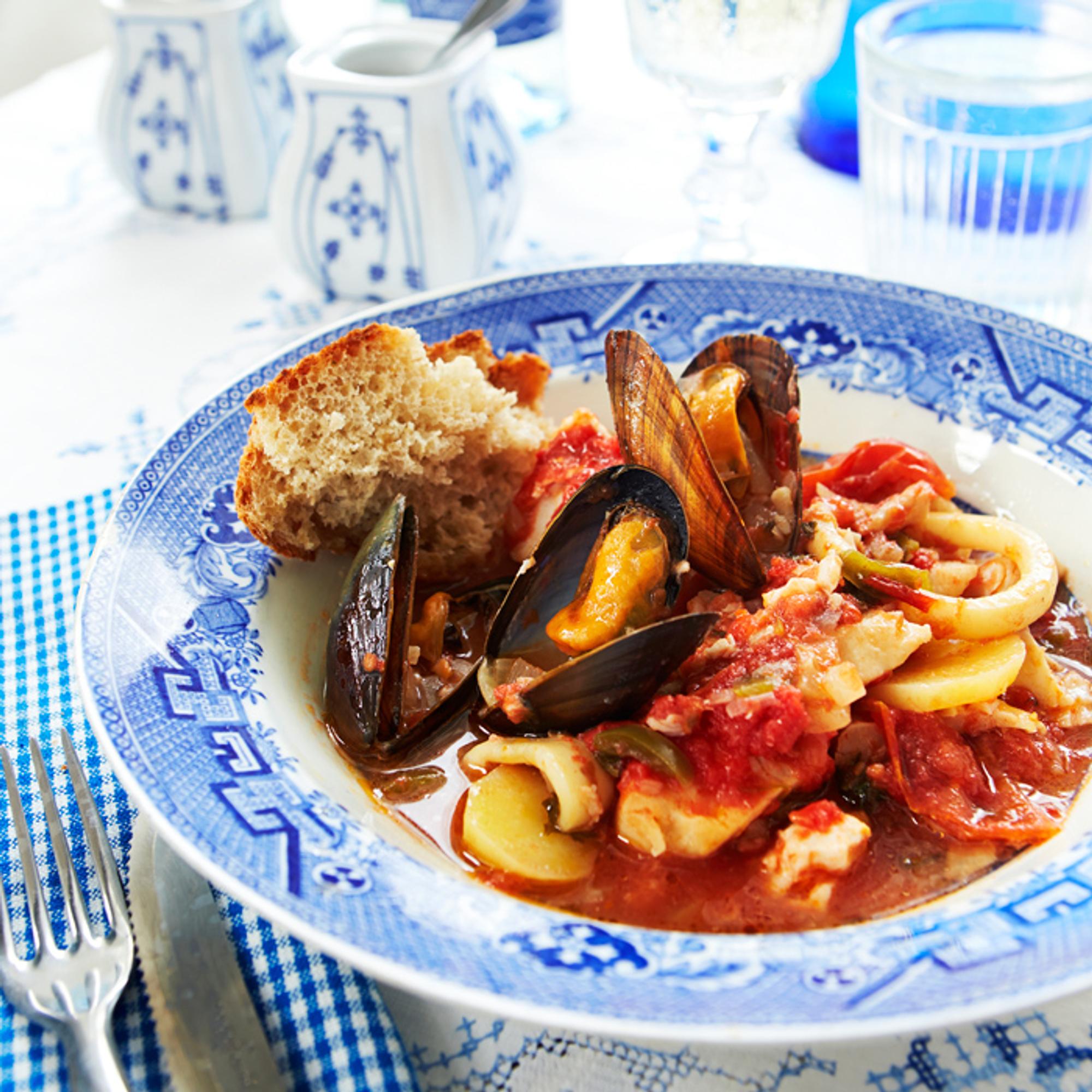*Caldeirada on perinteinen kalastajien ruoka, joka valmistetaan päivän saaliista – yhdestä tai useasta kalalajista sekä simpukoista ja äyriäisistä. Kasvikset täydentävät padan ateriaksi.