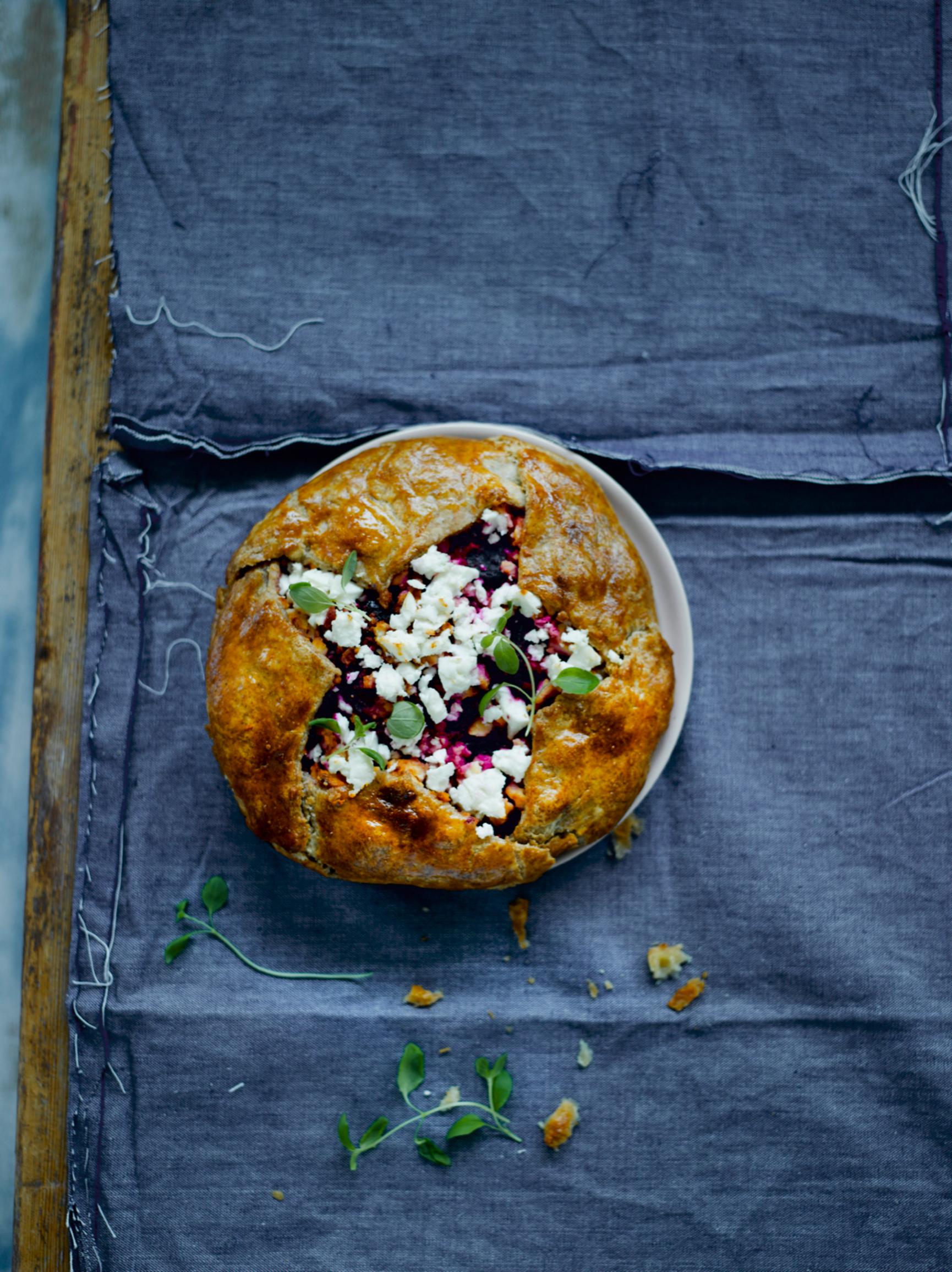 Suloinen punajuuri-fetagalette on täyteläinen piirakkaherkku! Balsamicolla ja hunajalla maustettu punajuuri ja suolainen feta sopivat upeasti yhteen. Kokeile myös tähtimäistä muotoa, se syntyy yllättävän helposti!