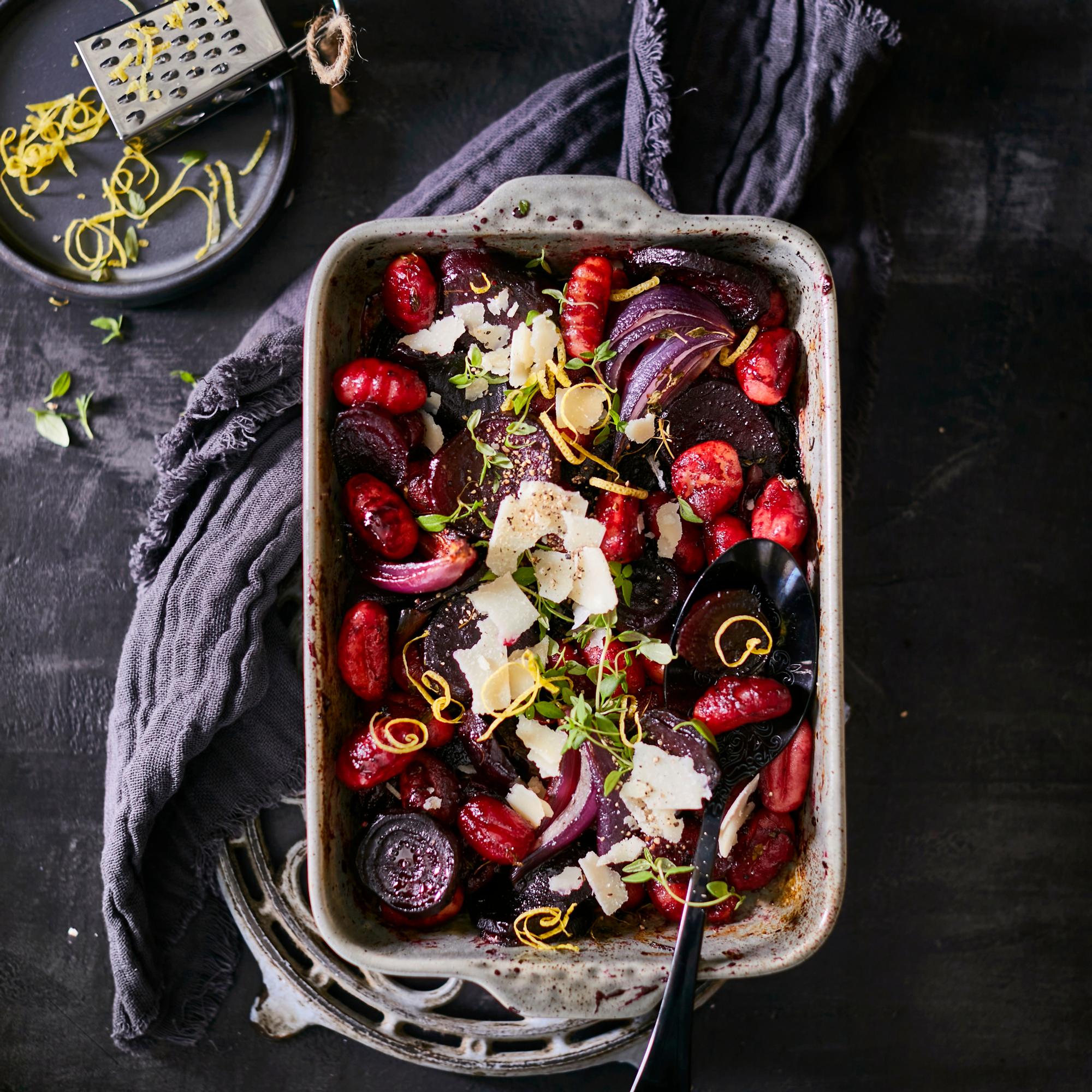 Punajuuri-gnocchivuoka on todellinen joka hetken vuoka! Gnocchit ja punajuuri ovat täydellinen parivaljakko, joiden liittoa hunaja ja balsamiviinietikka korostavat.