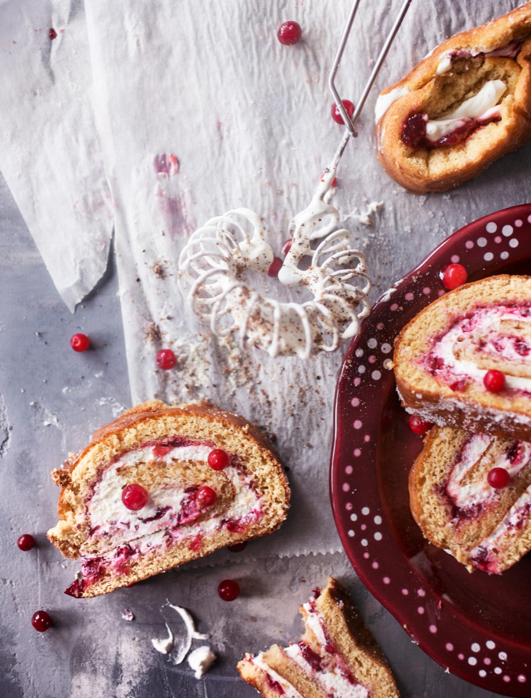 Puolukkakääretortun pohja leivotaan spelttijauhoilla, joiden ansiosta kääretorttupohja rullautuu jäähtyneenä kauniisti. Puolukkainen kerma-rahkatäyte saa uutta makua kardemummasta.