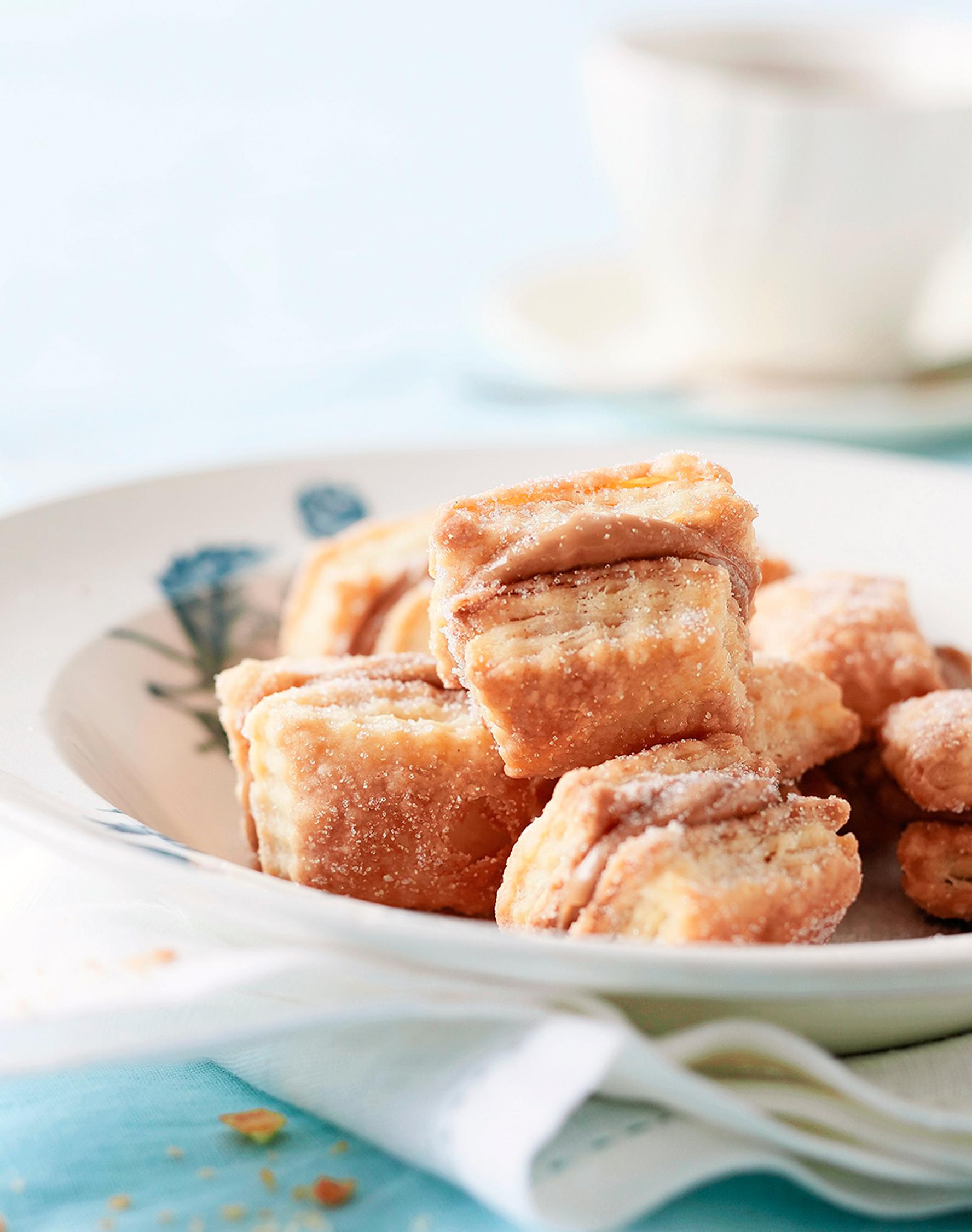 Ranskalaiset vohvelit kruunaavat juhlavan kahvihetken. Lehtevät taikinalevyt täytetään kermaisella mokkakiisselillä.