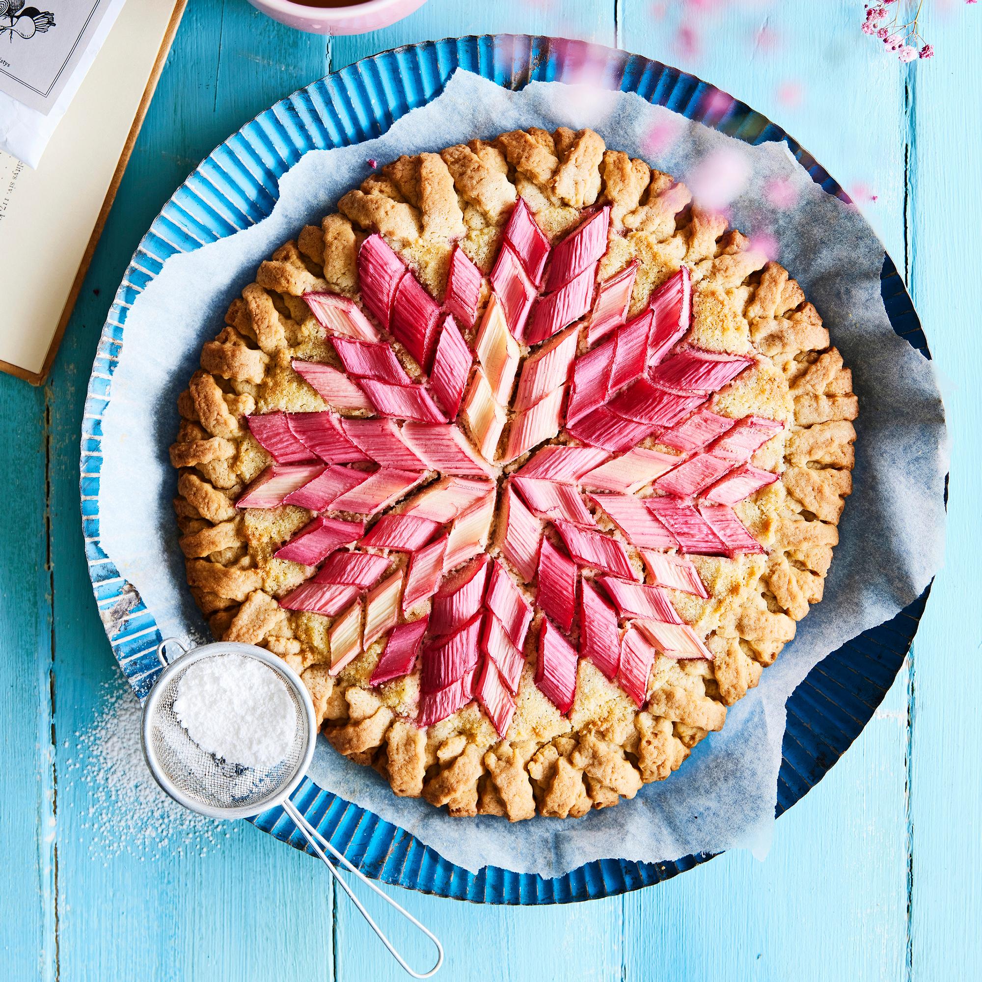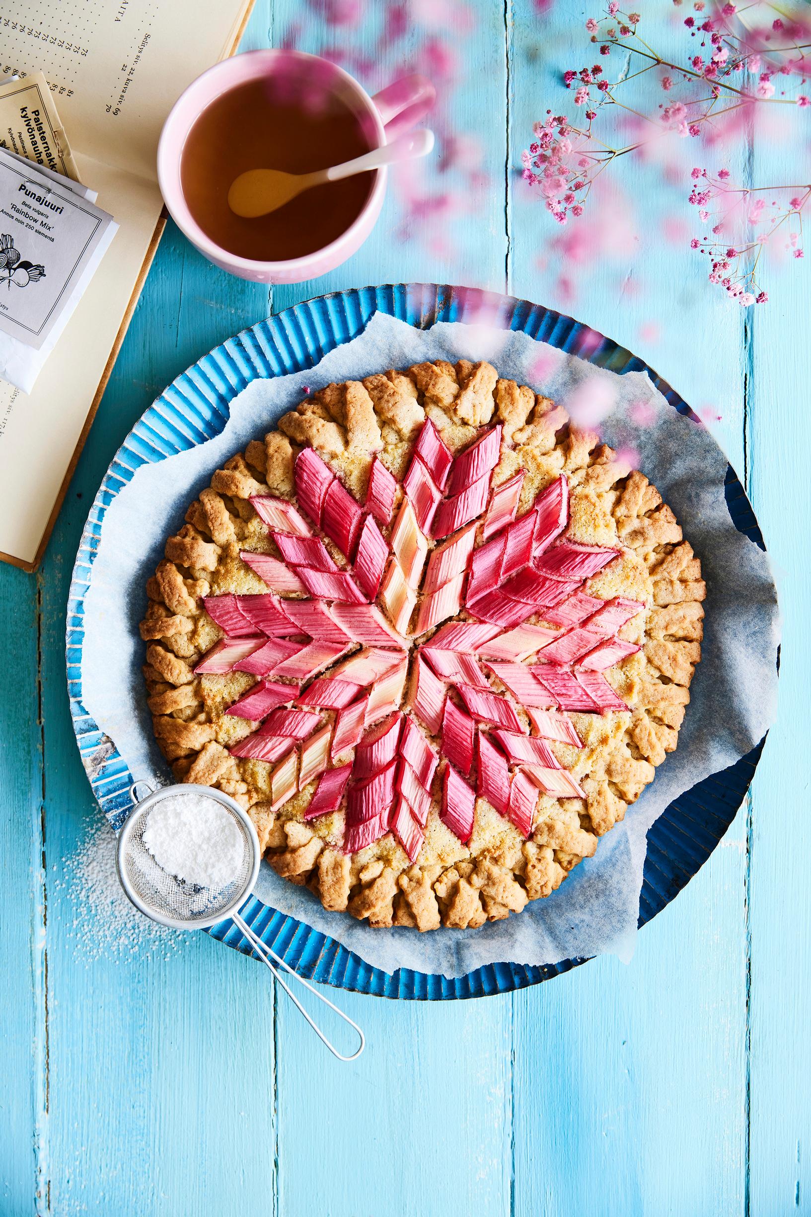 Raparperi-mantelipiirakka on kahvipöydän näyttävin ilmestys! Oikaise ja pyöräytä herkku vaivattomasti valmistaikinasta