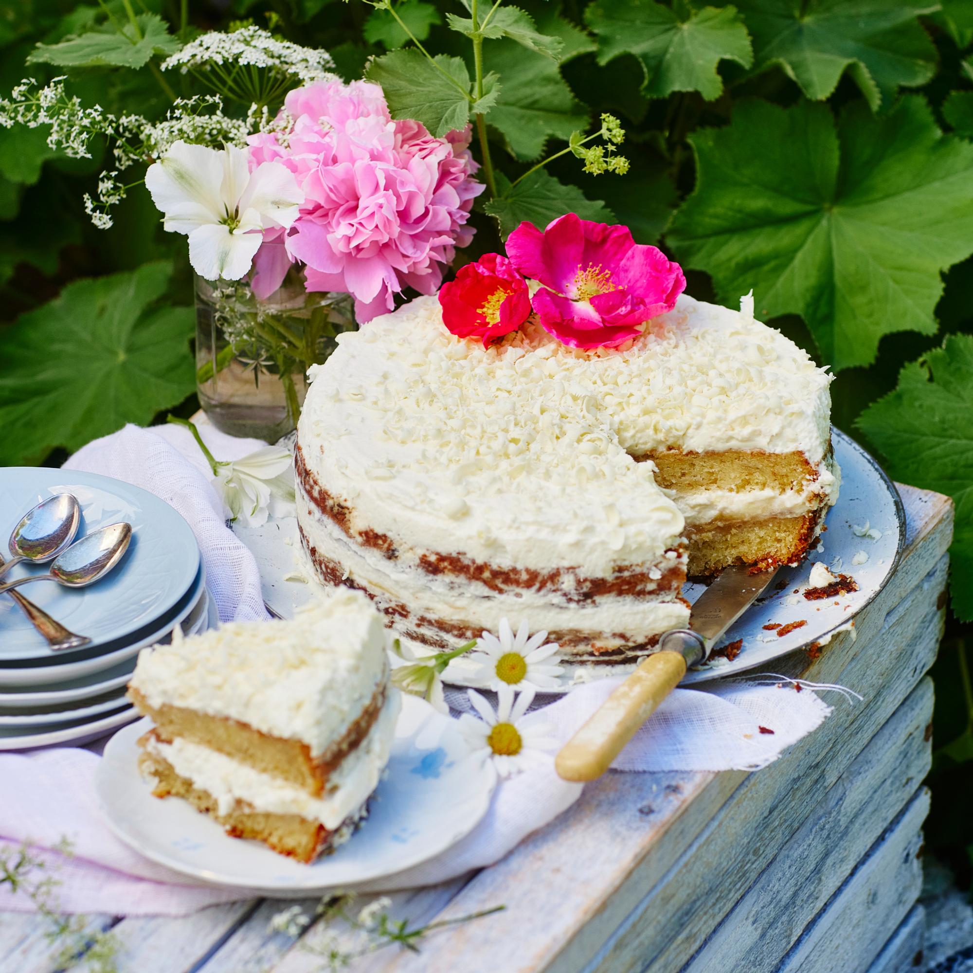 Klassinen paunakakku (pound cake) on saanut nimensä siitä, että siihen tulee tasamäärät eli paunan verran jauhoja, sokeria, voita ja munia. Kesäinen raparperi-paunakakku on mehevä kuin mikä, koska raparperihilloa sujautetaan sekä taikinaan että täytteeseen. Kirpsakan raparperin vastaparina toimii makea valkosuklaa.