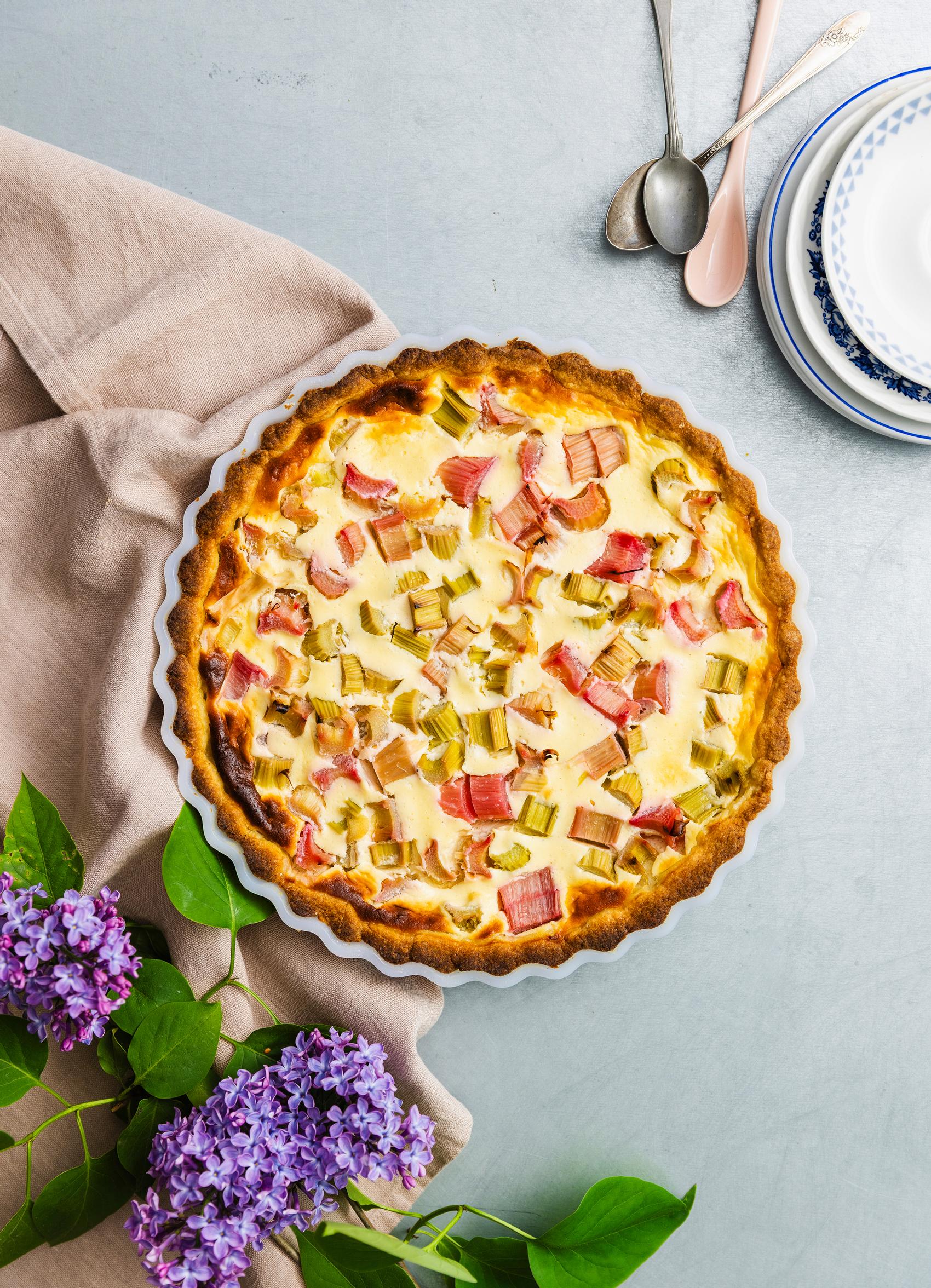 Raparperi-rahkapiirakka – rakastettu kesäherkku saa raikkaan säväyksen rahkatäytteestä