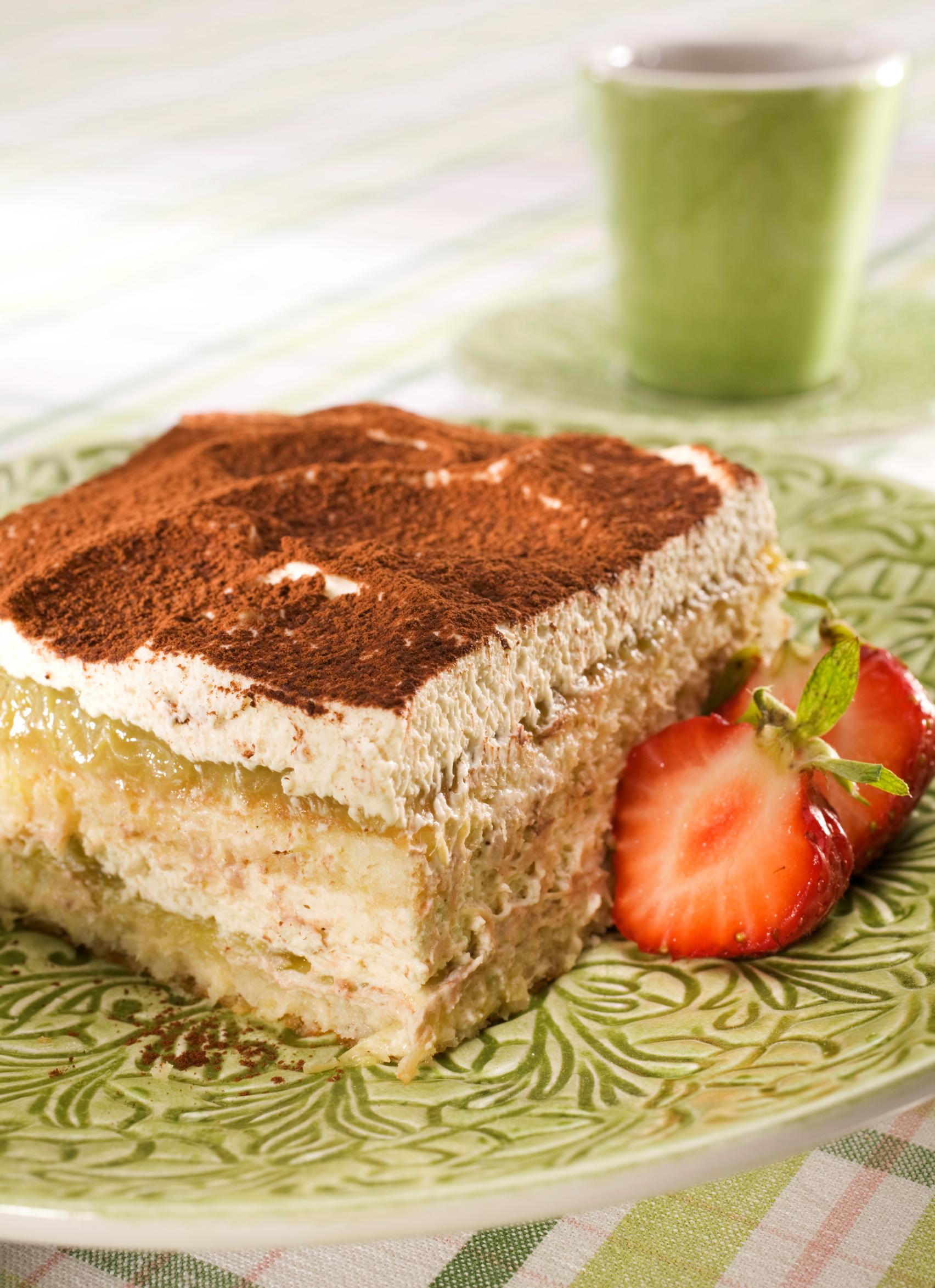 - Ripottele raparperitiramisun pinnalle kevyesti kaakaojauhetta. Koristele tiramisu tuoreilla mansikoilla.