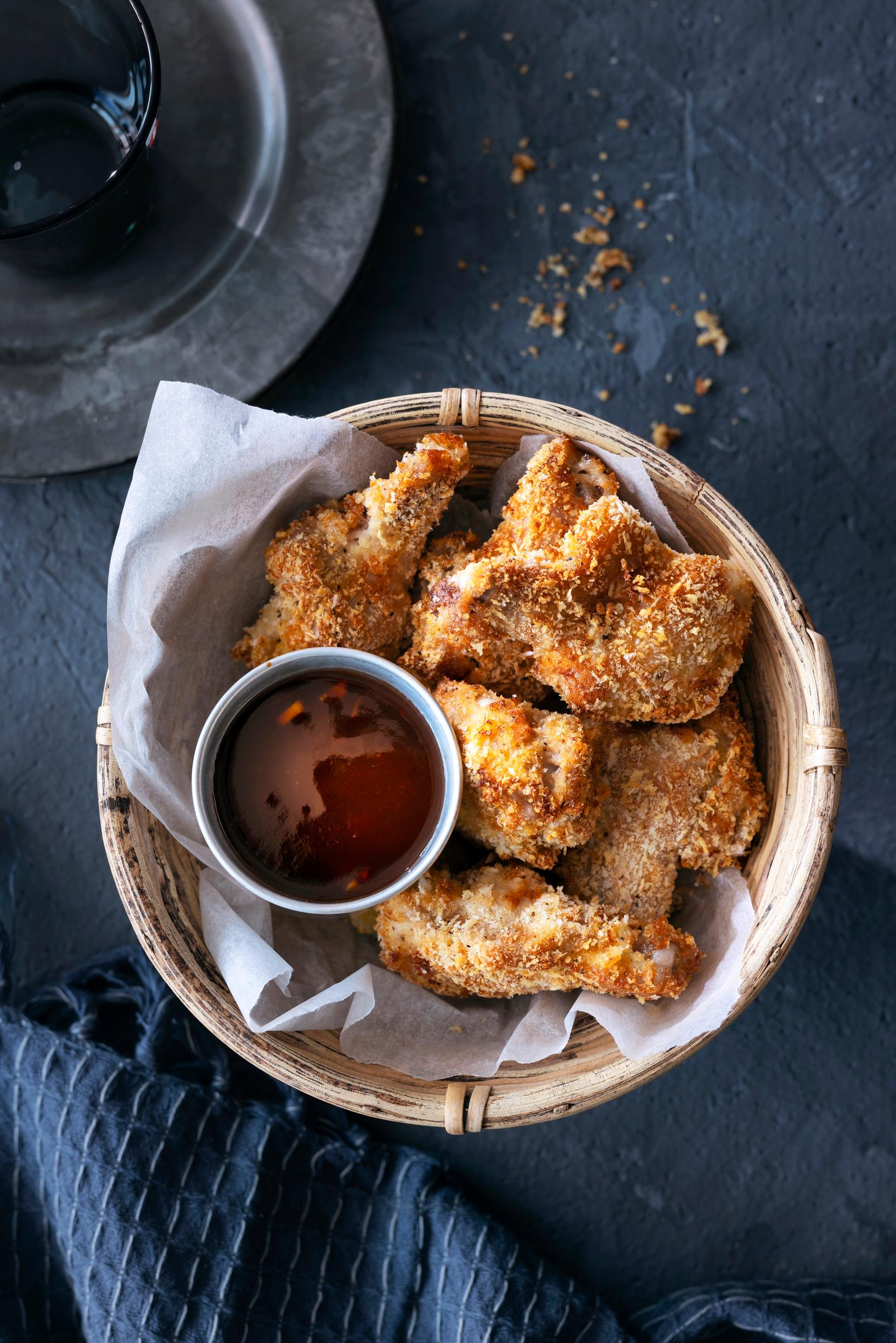 Japanilainen katsukana eli leivitetyt ja friteeratut kanapalat valmistetaan nyt fileiden sijaan siipipaloista, ja friteeraaminen korvataan ilmakypsennyksellä airfryer-laitteessa.