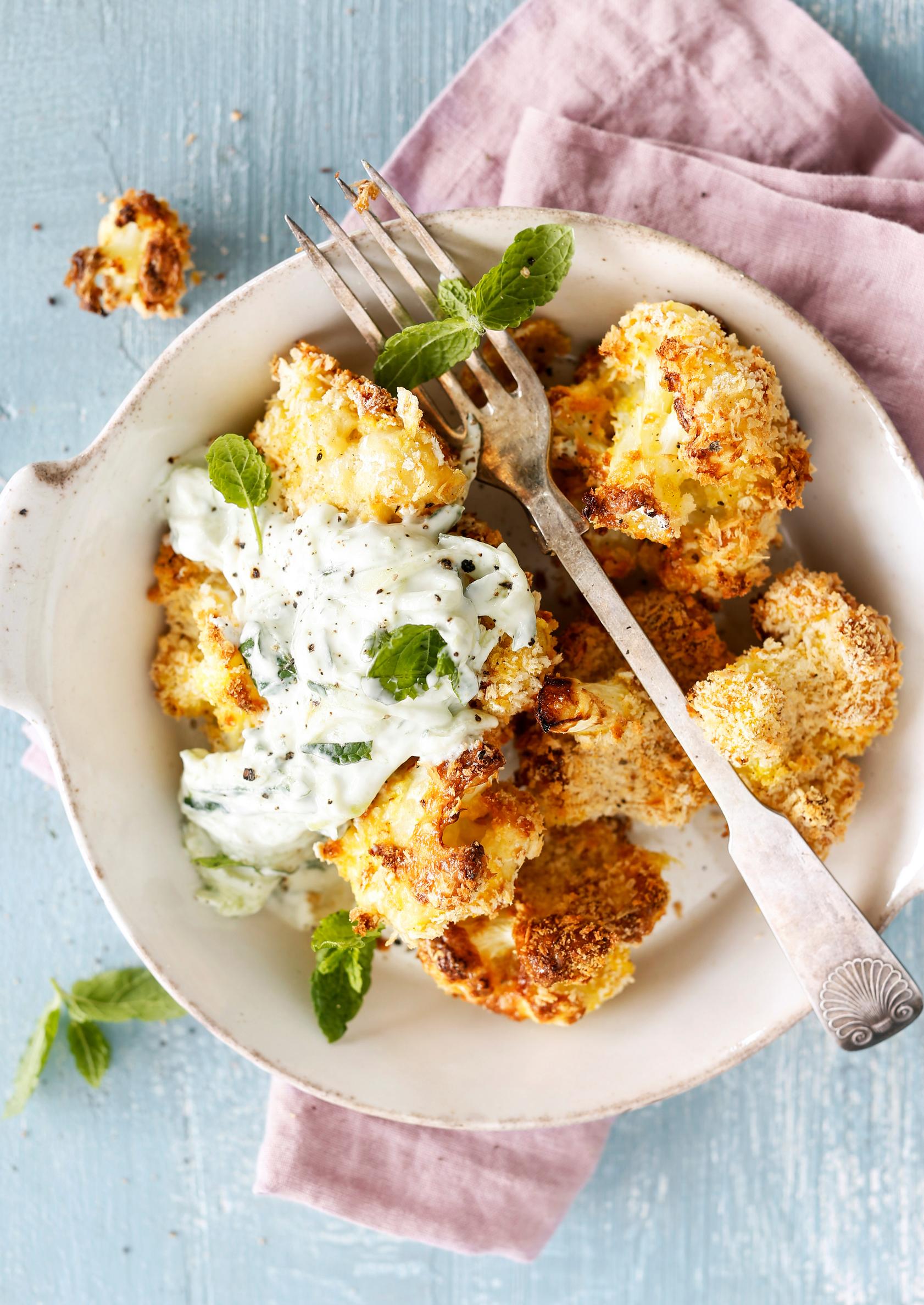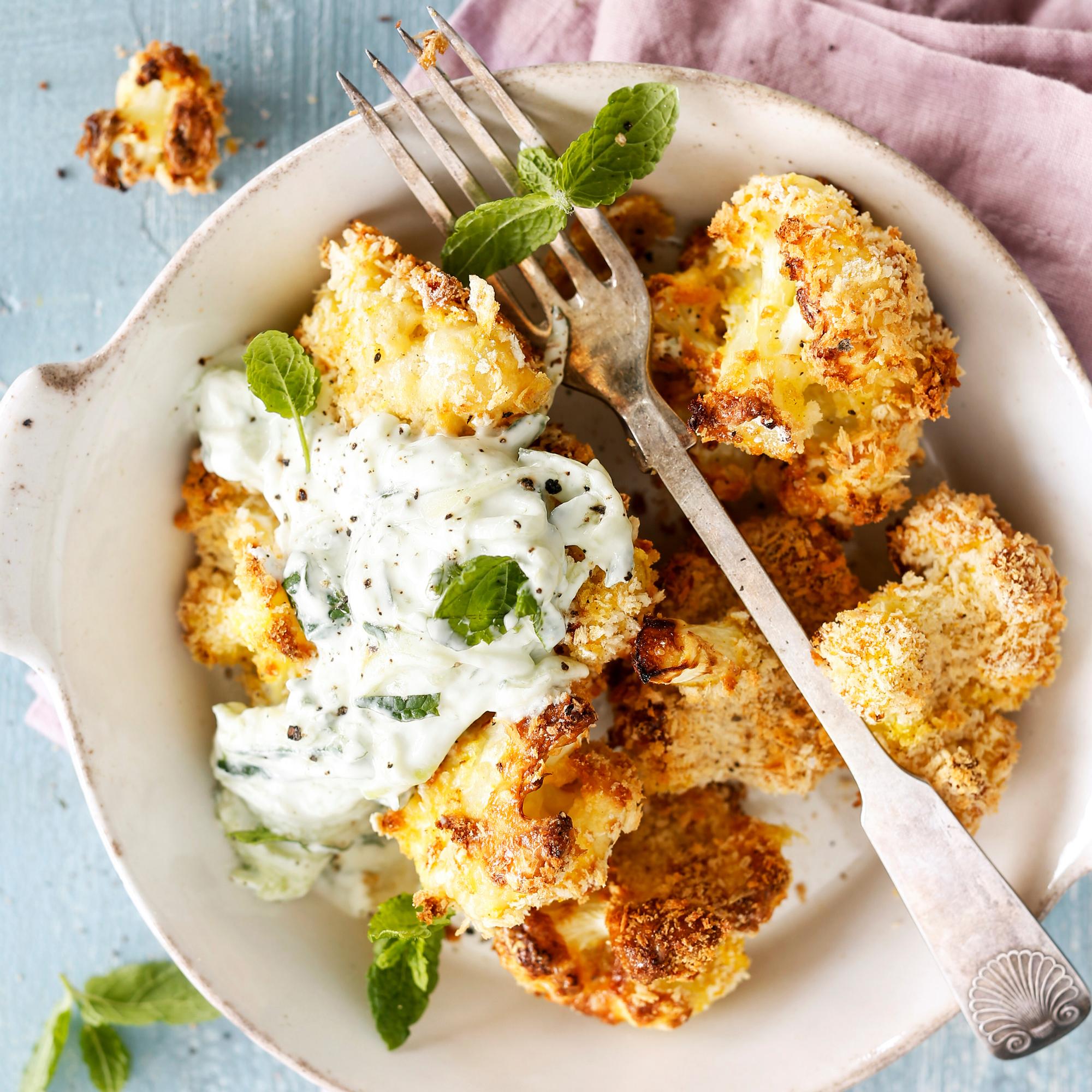 - Sekoita kastike jogurtista, valutetusta kurkkuraasteesta ja mausteista. Tarjoa kukkakaaliwingsit kastikkeen ja salaatin kera.