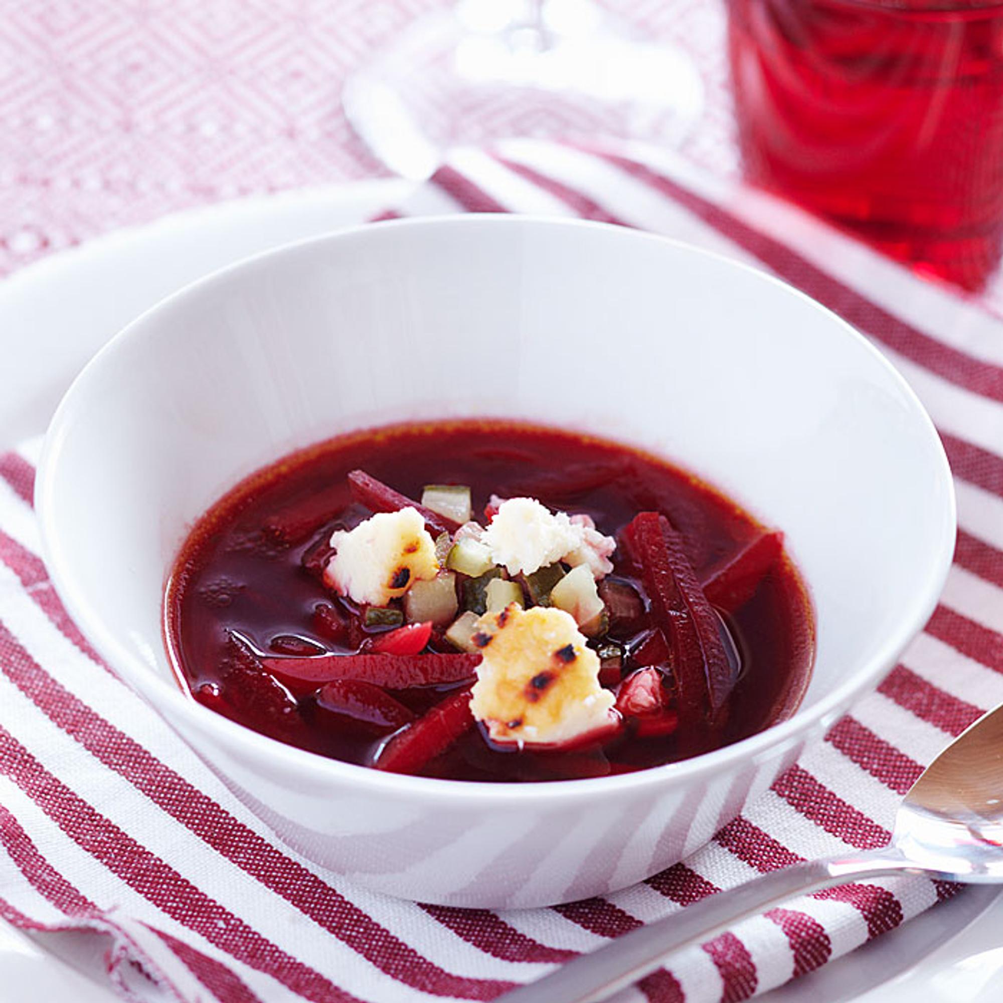 - Jaa rosollikeitto lautasille. Höystä rosollikeitto kurkkukuutioilla ja munajuustopaloilla.