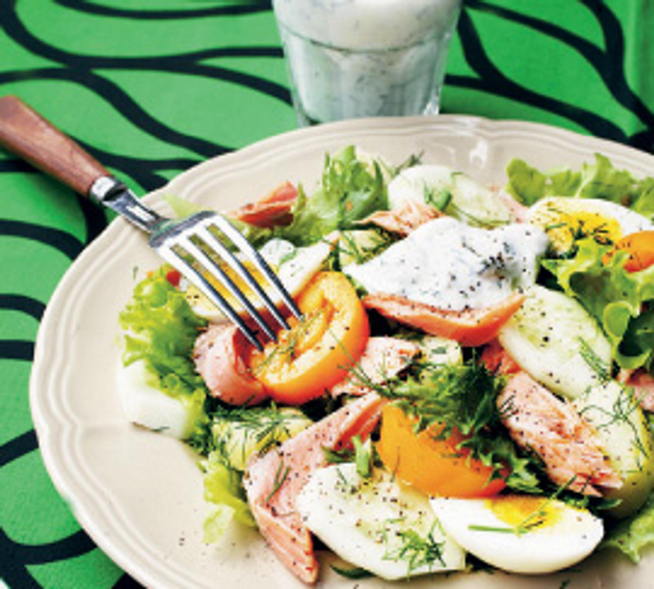Sekoita kastikkeen ainekset keskenään ja tarjoa savukalasalaatin kera.