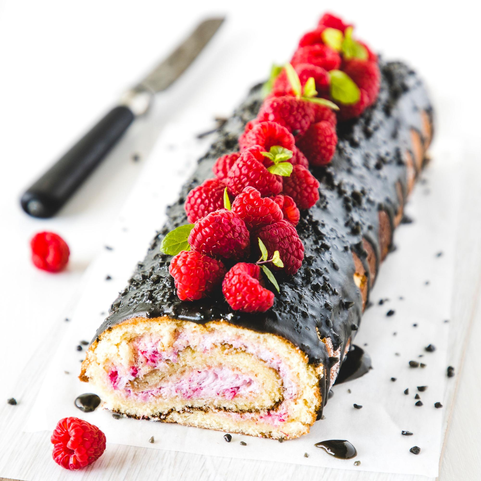 - Vaahdota kerma. Lisää sekaan rahka, sokeri ja vadelmat. Täytä torttu heti, kun pohja on jäähtynyt. Levitä kermavaahtoseos pohjalle ja kääri torttu napakalle rullalle leveämmän sivun suuntaisesti. Käännä valmis torttu siten, että sauma jää alapuolelle.