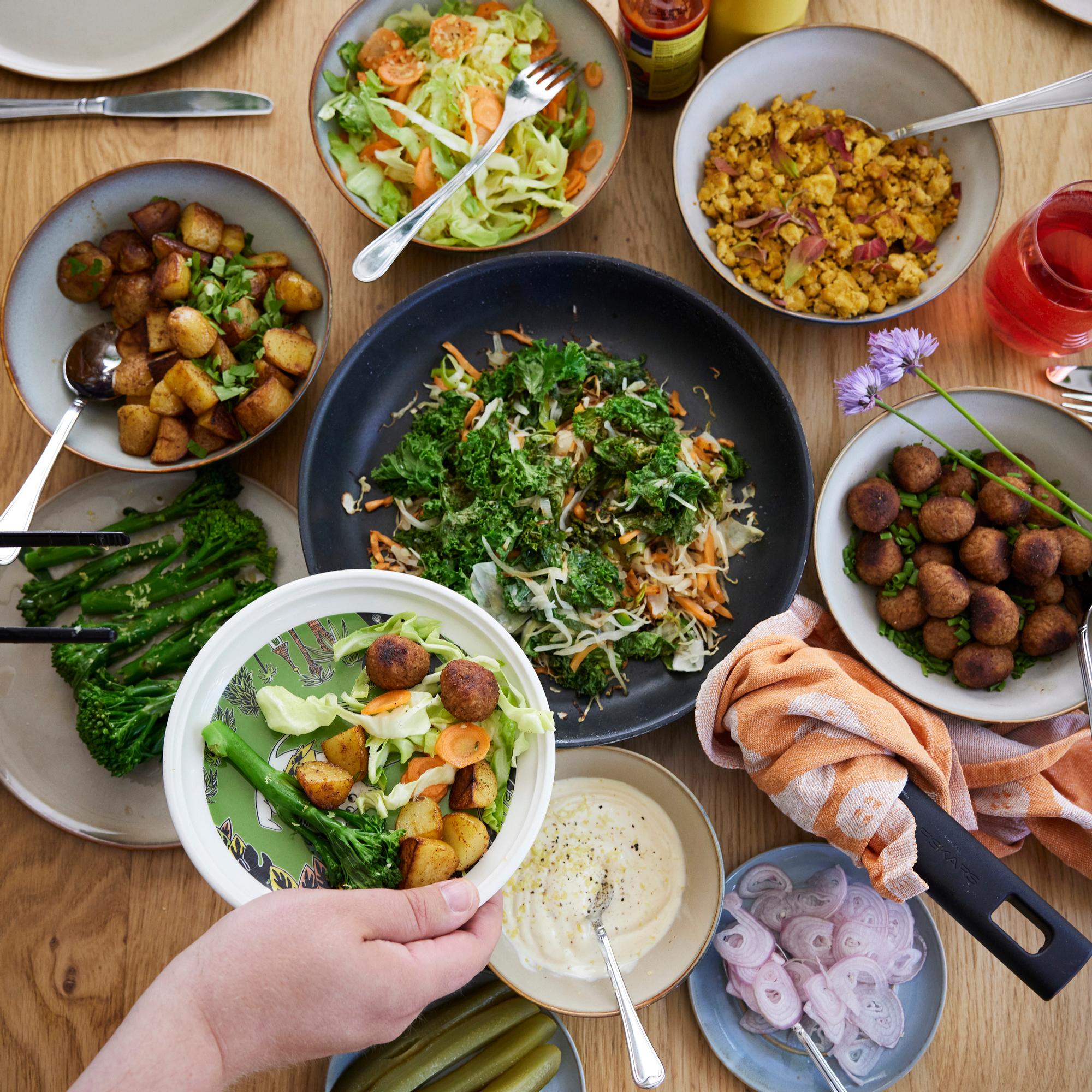 Satokausikalenterin kehittäjä Samuli Karjulan arkiruokasuosikki tarjoillaan hauskalla tavalla: jokainen perheenjäsen saa koota itse oman annoksensa. Grillimaustetut paistetut perunat ovat makumuisto 90-luvulta. Suomessa viljellään yli kymmentä eri kaalia – ja tässä reseptissä voi käyttää vaikka kaikkia.
