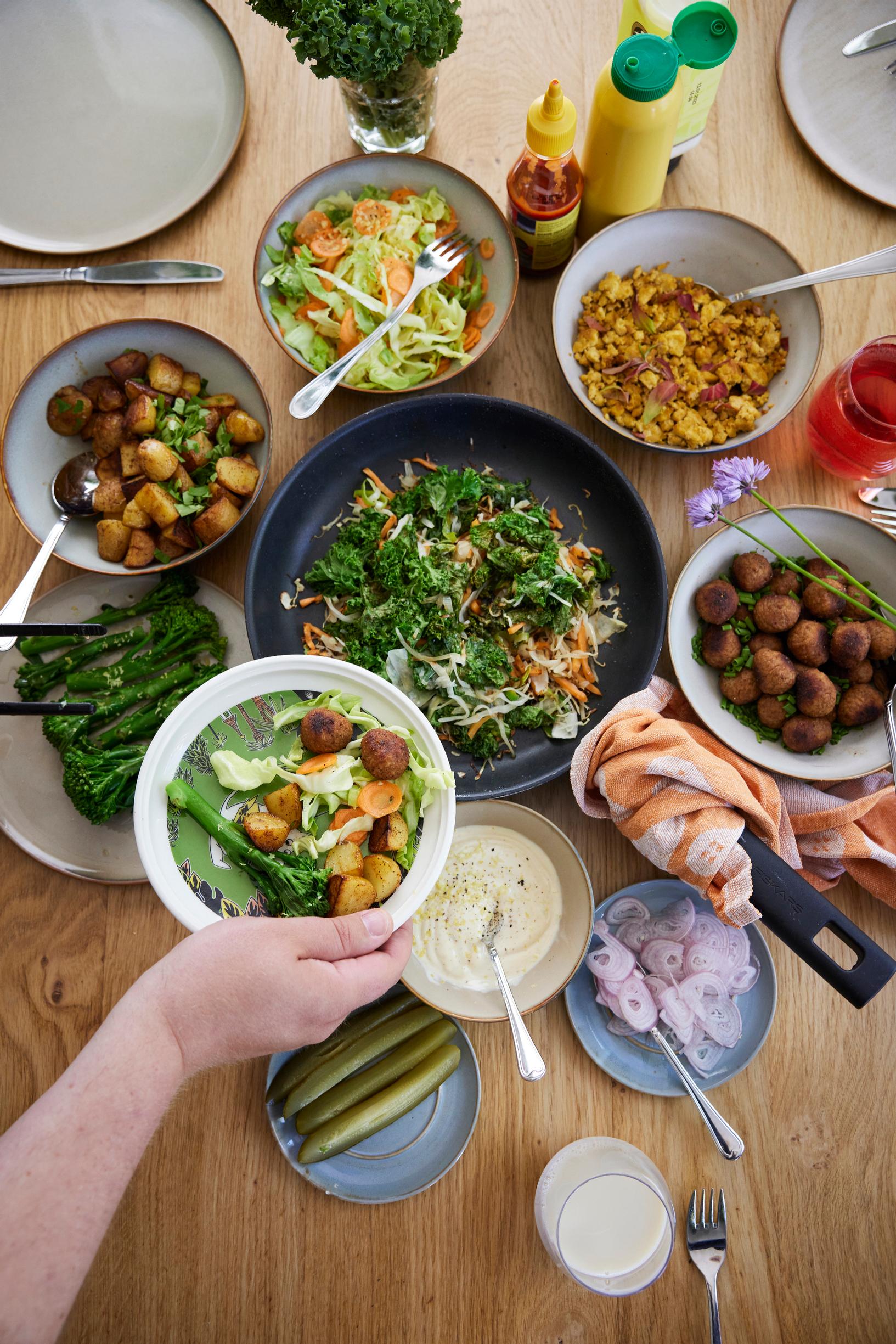 proteiinia esim. kasvispyöryköitä ja nakkeja