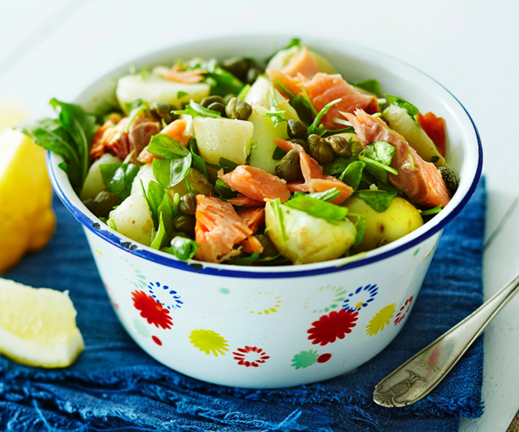 Nopea ja maukas kesäherkku: pottusalaatti savukalalla