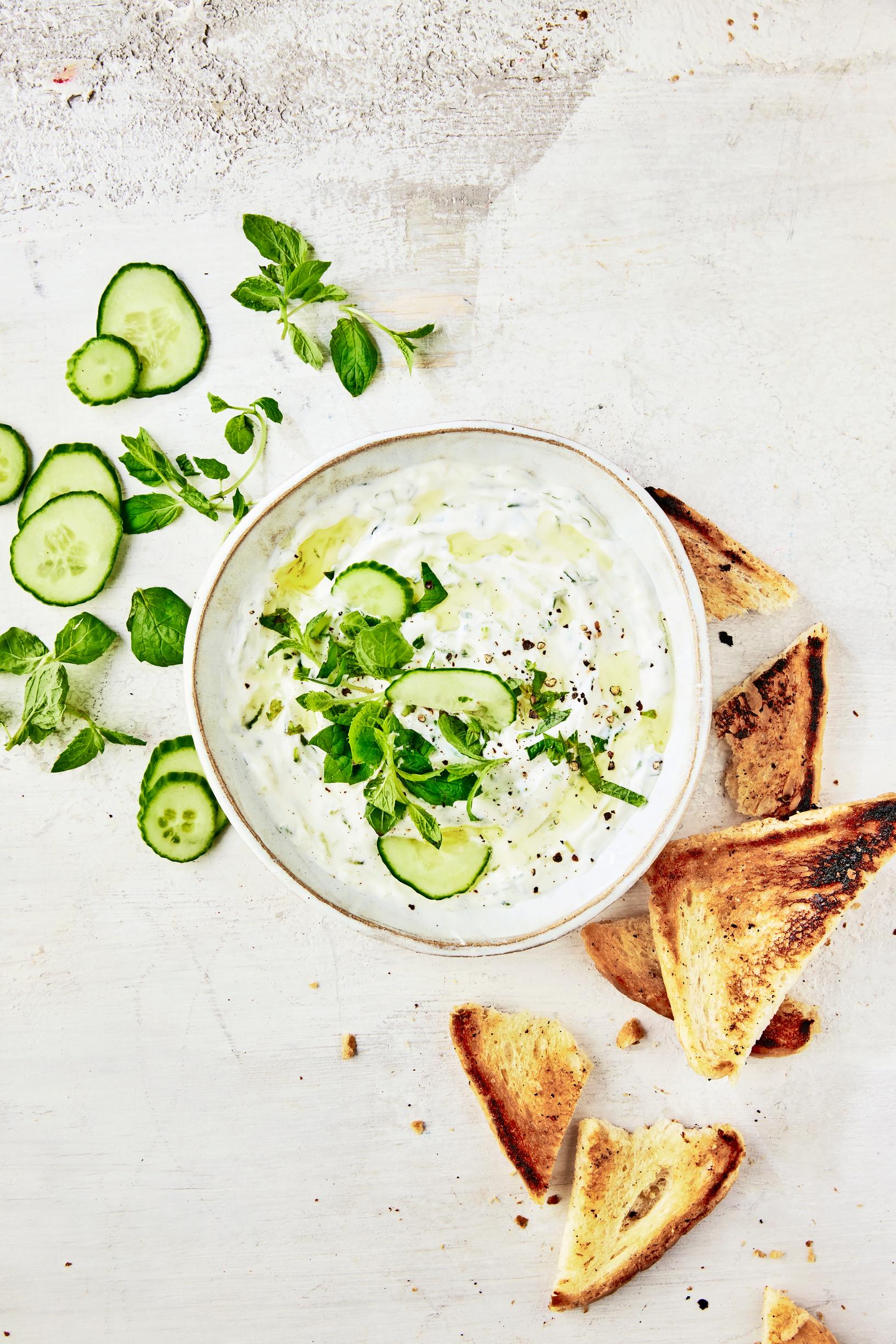 Täydellisen kreikkalaisen tsatsikin runko syntyy lohkeavan paksusta rasvaisesta jogurtista sekä tuoreesta kurkusta. Tärkeintä on hapon, makeuden ja suolan tasapaino.