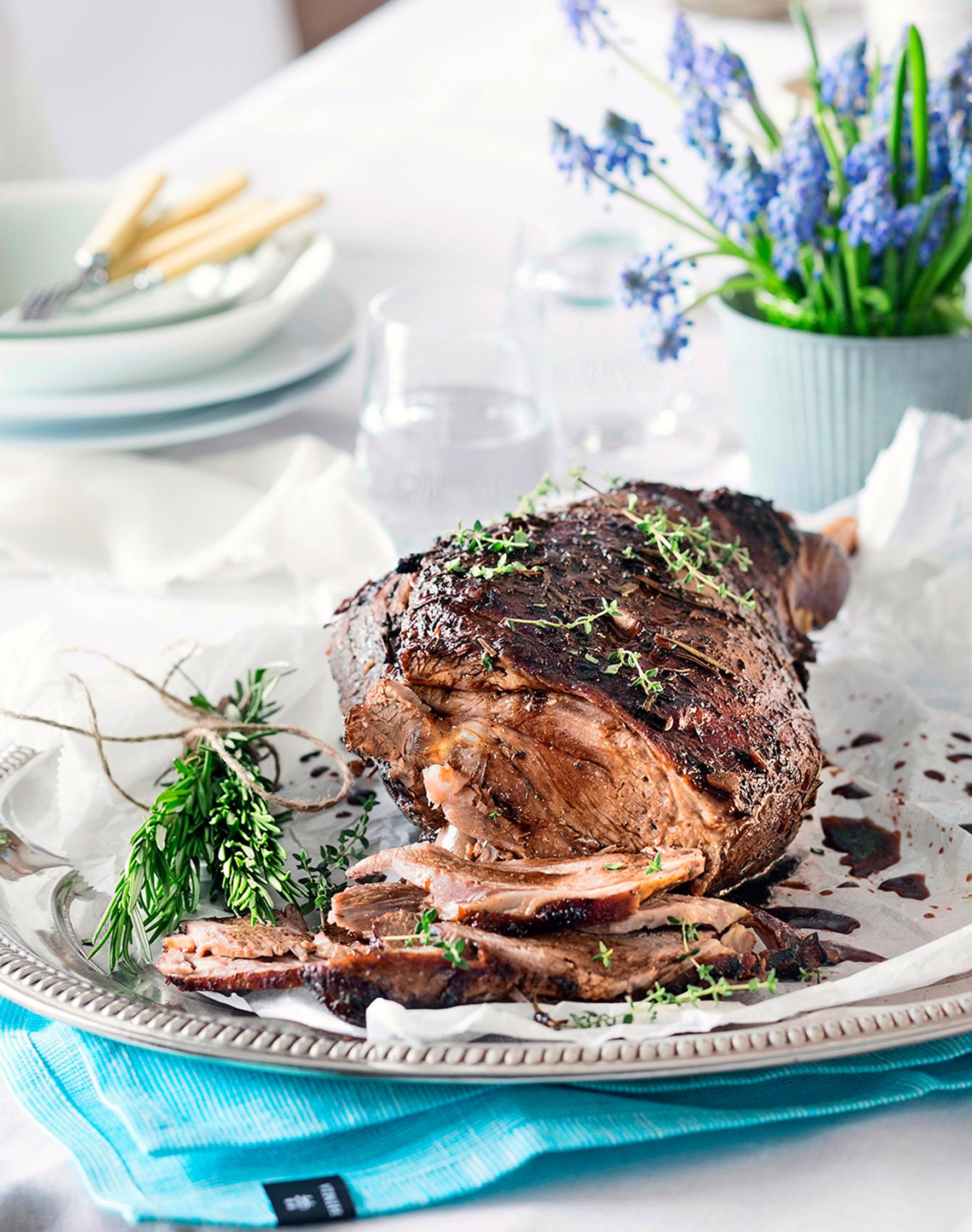 Mehevä lampaanviulu maustetaan sherryllä ja yrteillä. Tämä lammas kruunaa vaikkapa pääsiäispöydän!