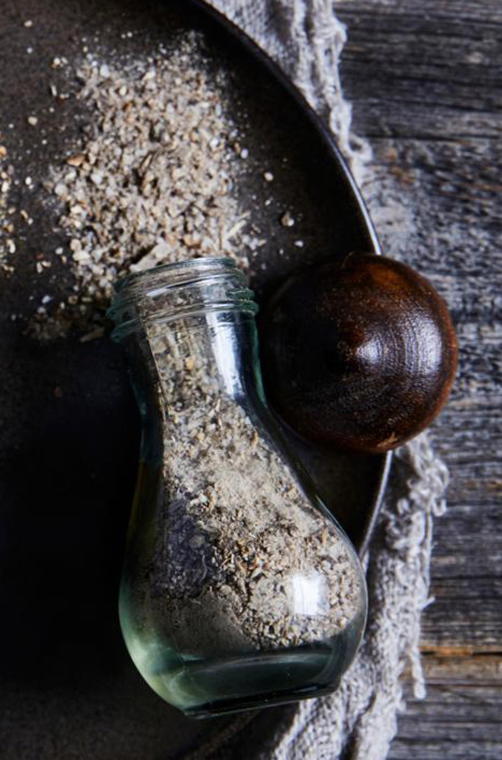 - Hienonna kuivatut sienet ja karkea merisuola tehosekoittimessa jauheeksi.