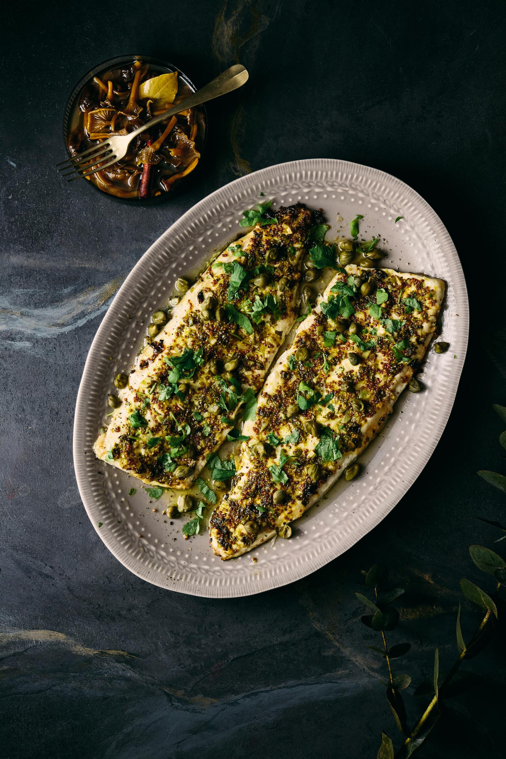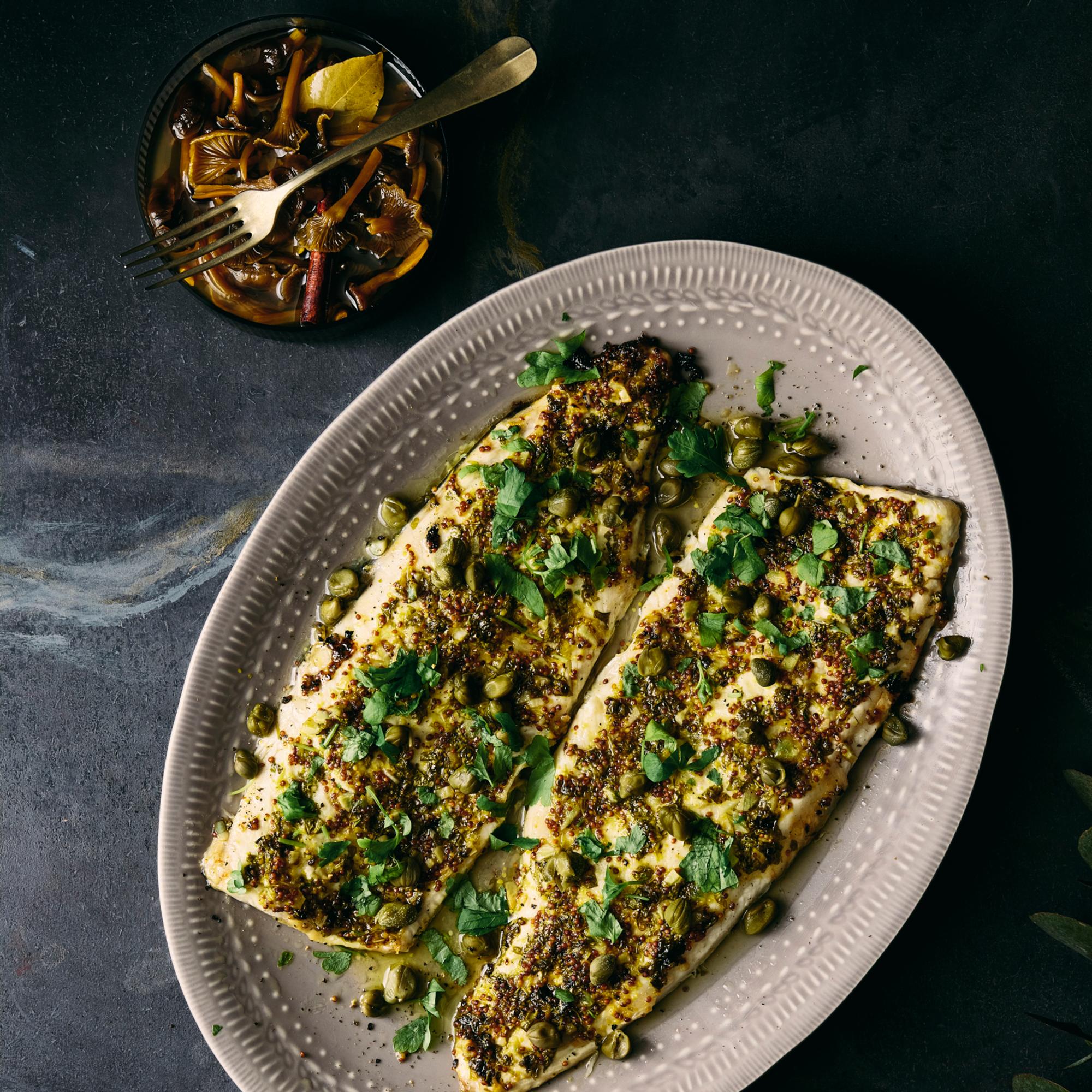 - Viimeistele siikafileet tuoreella persiljalla ja valutetuilla kapriksilla.