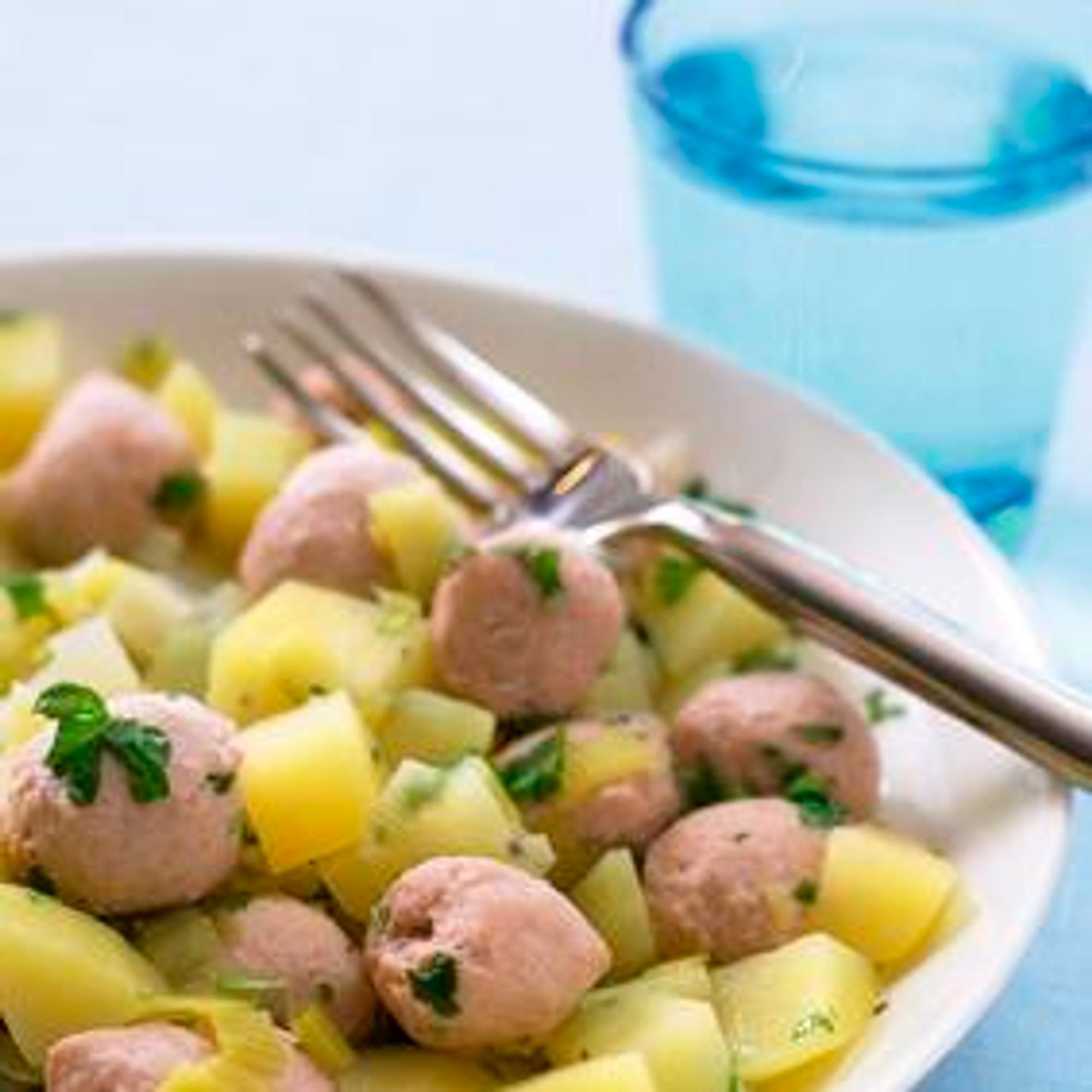 - Kuori ja paloittele perunat. Halkaise purjo, pese se hyvin ja hienonna suikaleiksi. Lisää perunat ja purjo kattilaan. Laita kansi kattilan päälle.