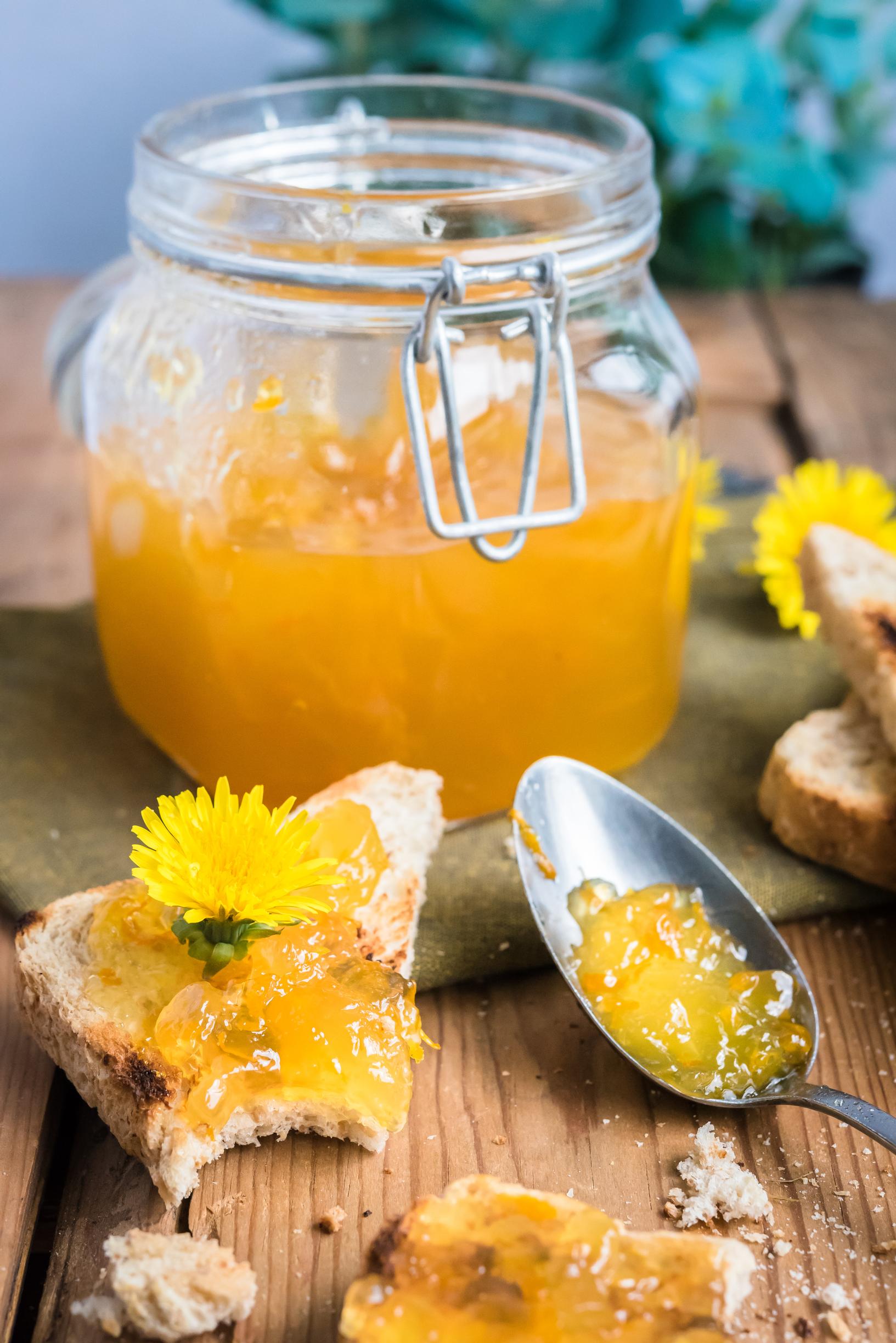 - Siivilöi terälehdet pois ja lisää voikukkaveteen hillosokeri, appelsiinimehu, sitruunamehu ja appelsiinin kuori.