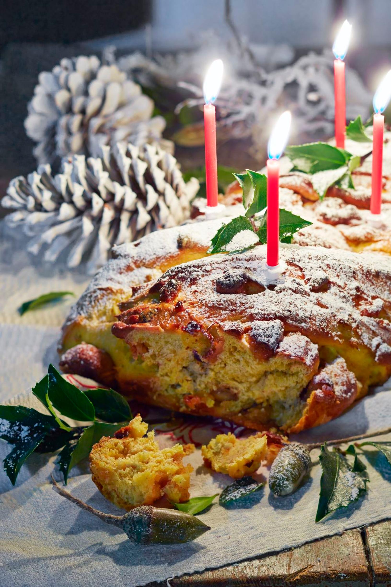 Stollen on perinteinen saksalainen joulupulla vailla vertaa. Keski-eurooppalaisilla joulutoreilla sen tunnistaa nimellä Weihnachtsstollen tai Christstollen. Hiivalla kohotettu leivonnainen on kyllästetty runsaalla määrällä kuivattuja hedelmiä ja marsipaania tai mantelimassaa. Usein hedelmät liotetaan tilkassa alkoholia. Tässä ohjeessa on myös sahramia ja tummaa rommia. Kuva: Laura Riihelä