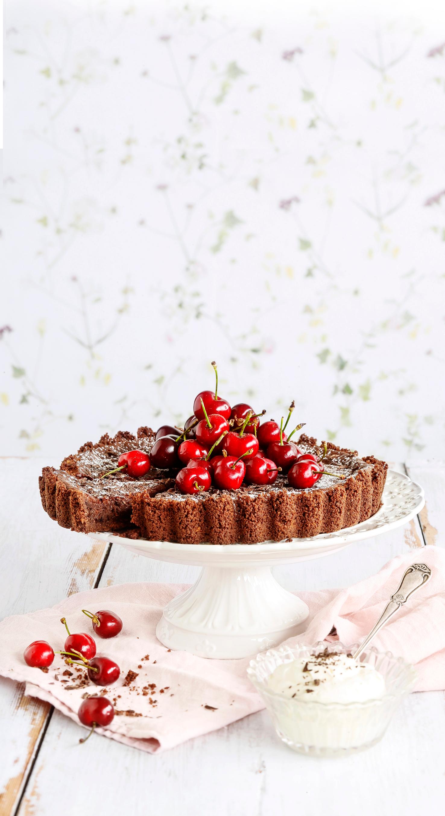 Kaada seos voideltuun irtopohjavuokaan (Ø 24–26 cm). Painele taikina vuoan pohjalle ja puoleen väliin reunoja. Nosta vuoka jääkaappiin täytteen tekemisen ajaksi.