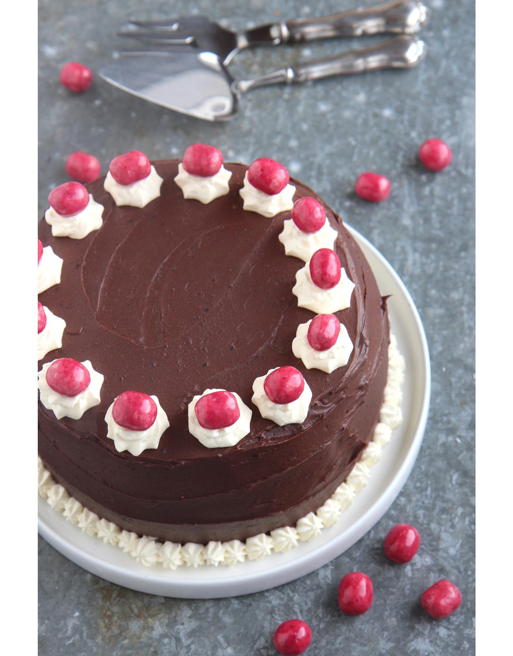 Keitetään suklaakuorrute. Sekoitetaan keskenään kattilassa sokeri, kaakojauhe, kerma sekä keltuaiset. Kuumennetaan rauhallisesti kiehumispisteeseen koko ajan sekoittaen. Annetaan jäähtyä hyvin. Vatkataan pöydällä pehmennyt voi vaahdoksi ja lisätään täysin jäähtynyt kiisseli vähitellen vatkaten, sitten valkuaiset tarpeellinen määrä yksitellen vatkaten ja lopuksi vanilliinisokeri. Valkuaisia lisätään yksi kerrallaan ja kun seos näyttää sopivan paksulta, jätetään loput lisäämättä. Mikäli seos näyttää liian löysältä, voi sitä pitää hetken jääkaapissa kovettumassa.