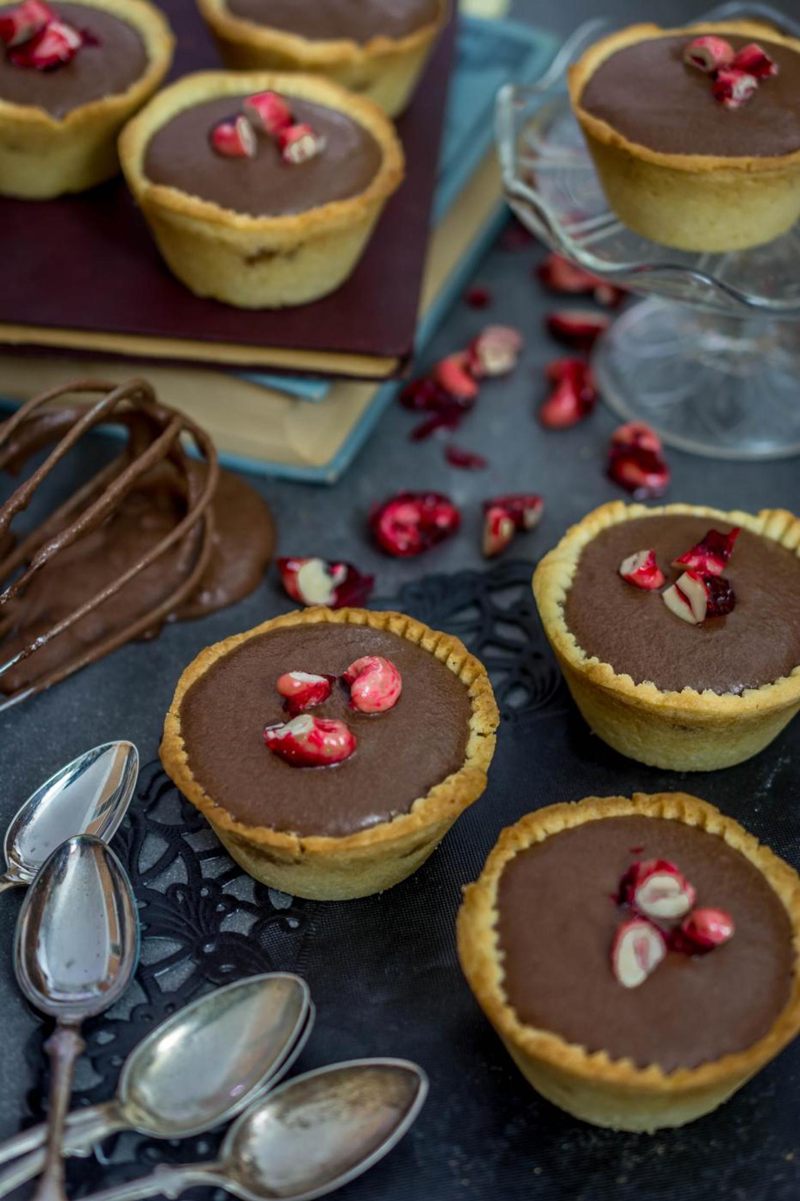 Valmista kuorrute sekoittamalla tomusokeri, vesi ja kaakaojauhe keskenään. Kuorruta jäähtyneet ja jähmettyneet kupit täytteineen kuorrutteella. Koristele vaikkapa pähkinärouheella. Anna jälleen jähmettyä.