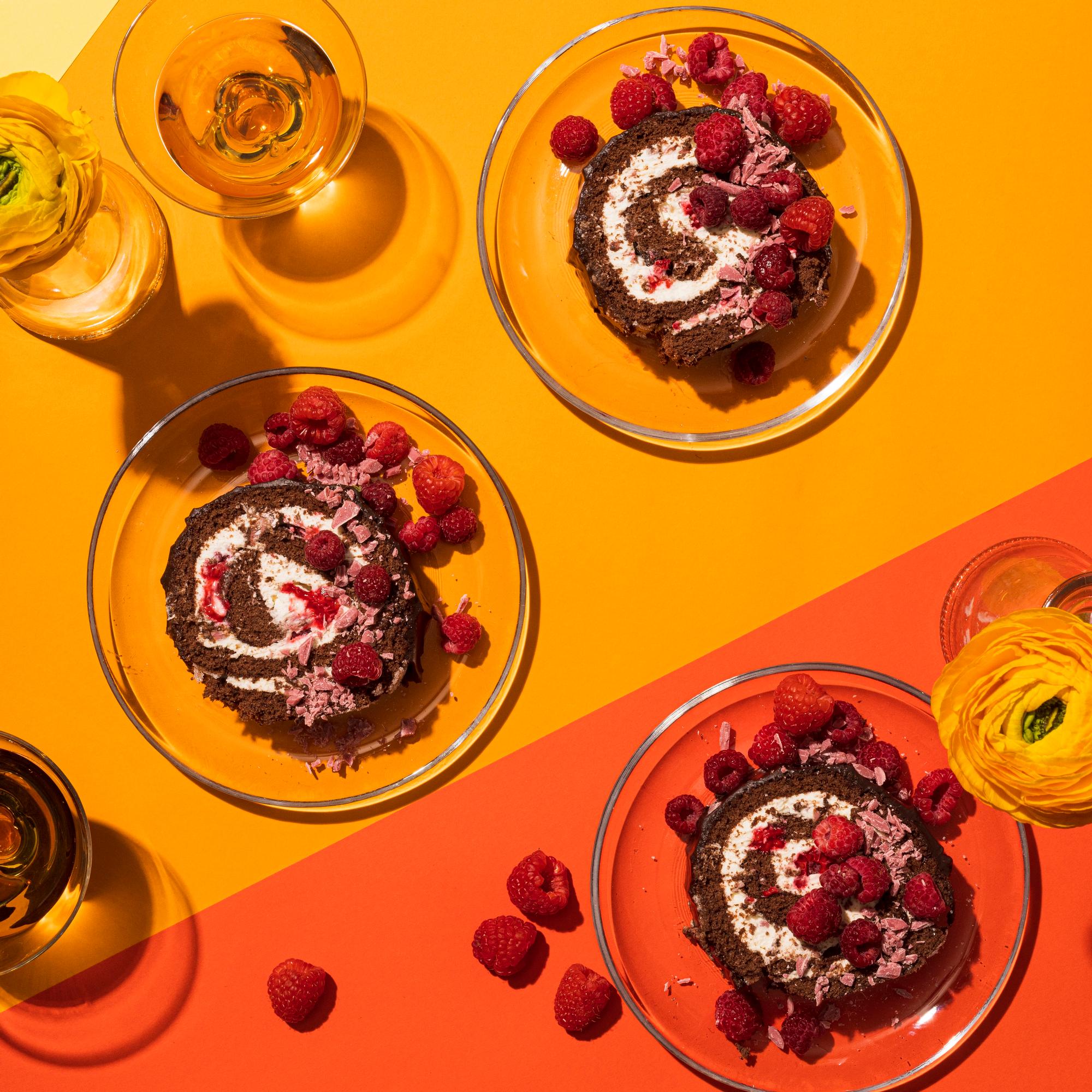 Tummaa ja rubysuklaata, kaakaojauhetta ja raikkaita vadelmia – onko herkullisempaa yhdistelmää? Kääretortun pohjan voi paistaa jo illalla, jolloin äitienpäivän aamuna ei tarvitse kuin täyttää, rullata ja tarjoilla sänkyyn!