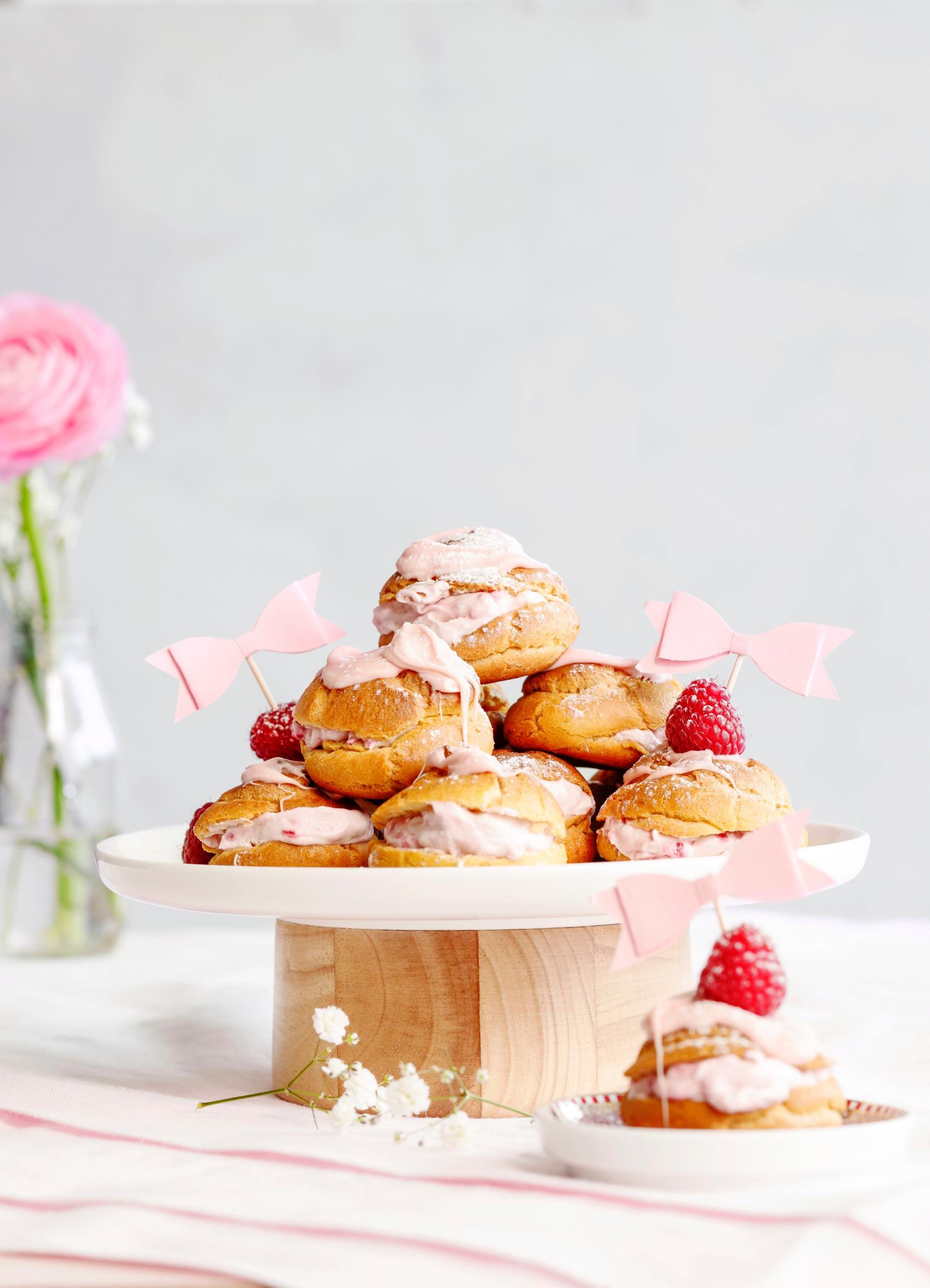 Täytä tuulihatut ihanalla valkosuklaa-vadelma-jogurttitäytteellä juuri ennen tarjoamista.