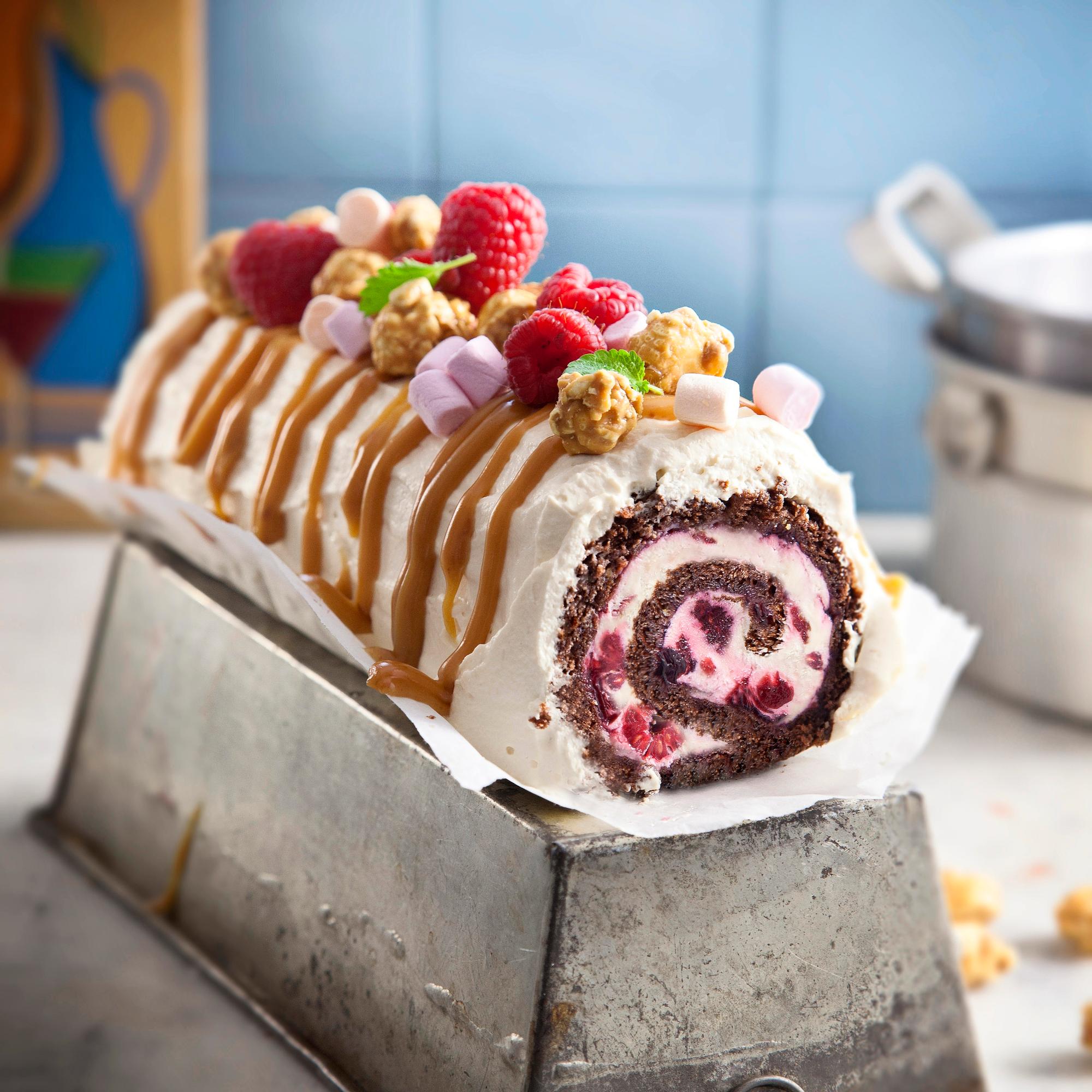 Suolakinuskikääretortun muhkean makeassa täytteessä maistuvat kinuskin lisäksi vadelmat ja puolukat. Tortun päälle keitetään maailman helpoin suolakinuski. Perunajauhoista leivottava rulla on gluteeniton.