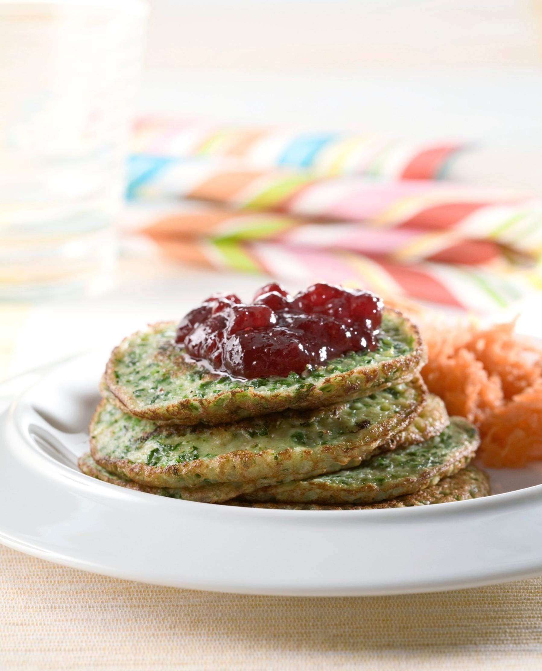 Tarjoa pinaattiletut puolukkahillon ja porkkanaraasteen kanssa.