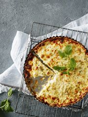 - Kaada täyte esipaistetulle pohjalle. Paista halloumi-chorizopiirakkaa 200 asteessa 20-30 minuuttia.