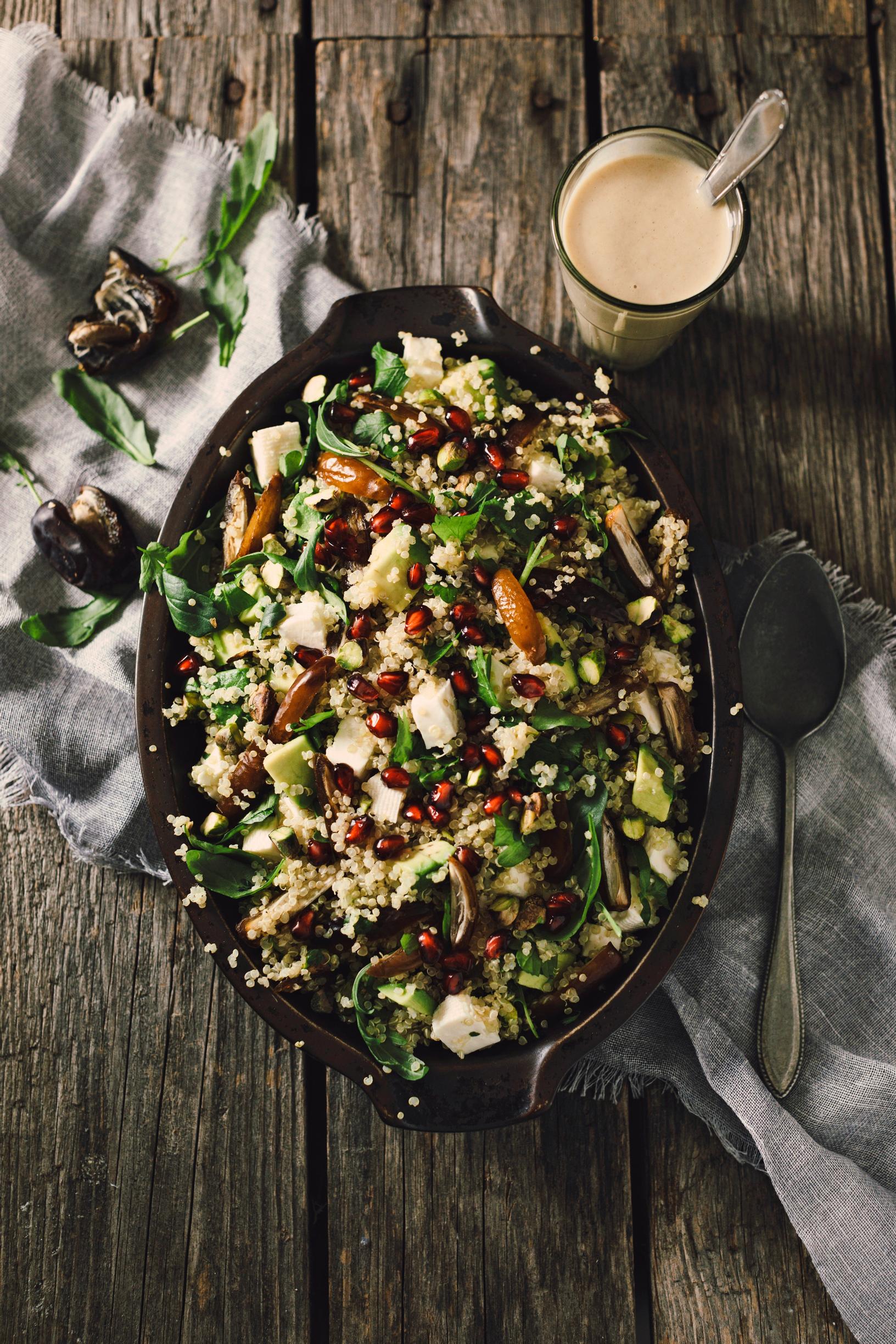 Mietitikö ihanaa salaattia loppuvuoden juhlahetkiin? Se on tässä! Taatelisalaatti on pullollaan herkullisia makuja. Kvinoa, avokado ja kotijuusto tuovat salaattiin ruokaisuutta. Nappaa ohje!