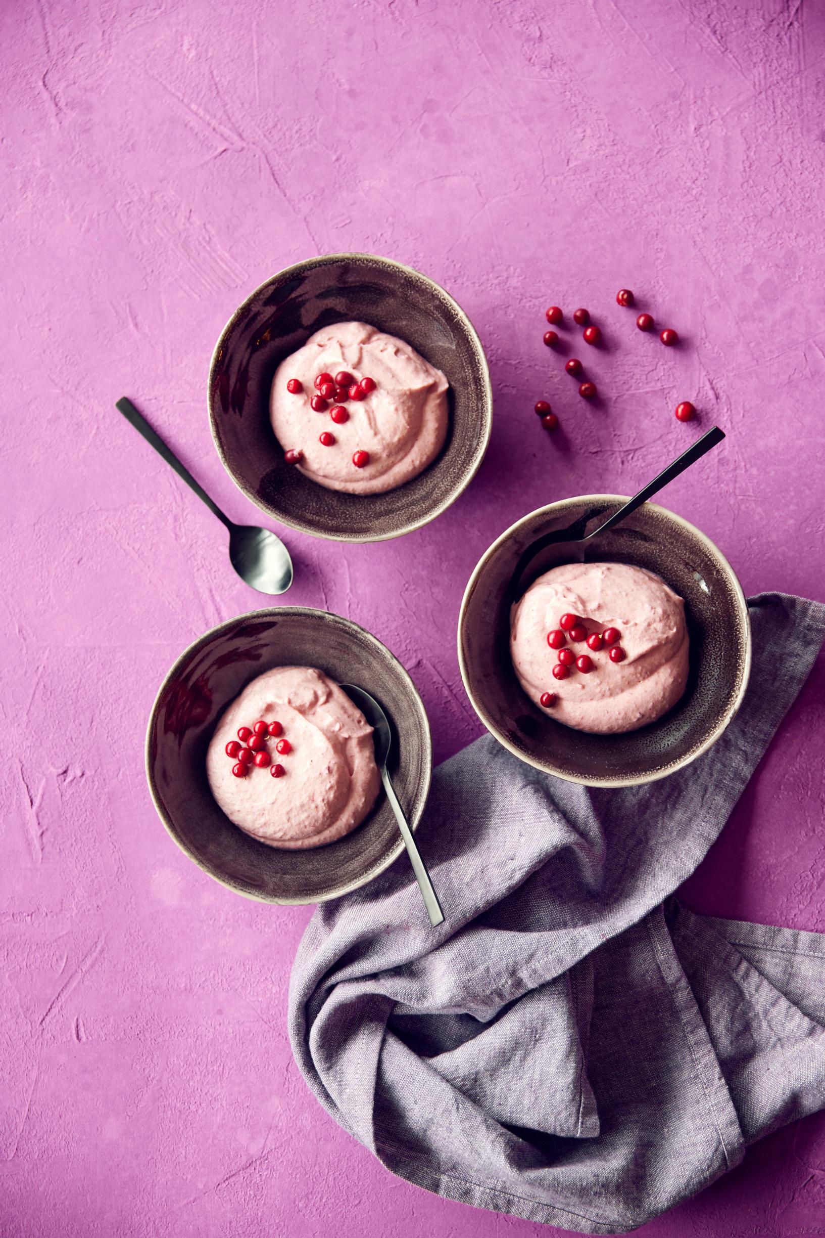 - Vatkaa kerma vaahdoksi ja kääntele vaahto marjaseoksen joukkoon.