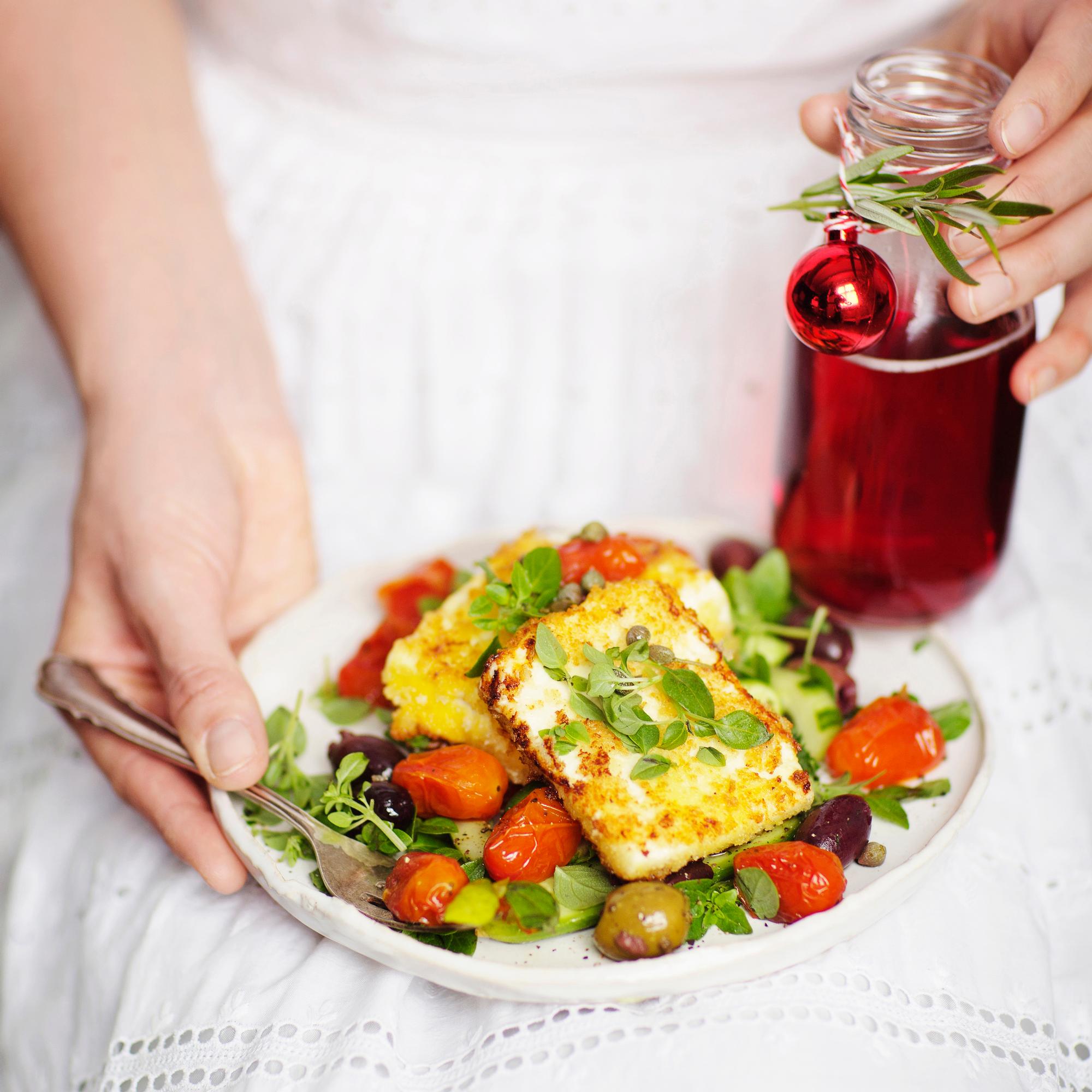 Talvisalaatissa maistuvat kreikkalaisen salaatin klassikkomaut viileään vuodenaikaan sovitettuina. Paista feta rapeaksi ja paahda tomaatit uunissa hitaasti meheviksi, ja pian saat herkutella uudella lempisalaatillasi.
