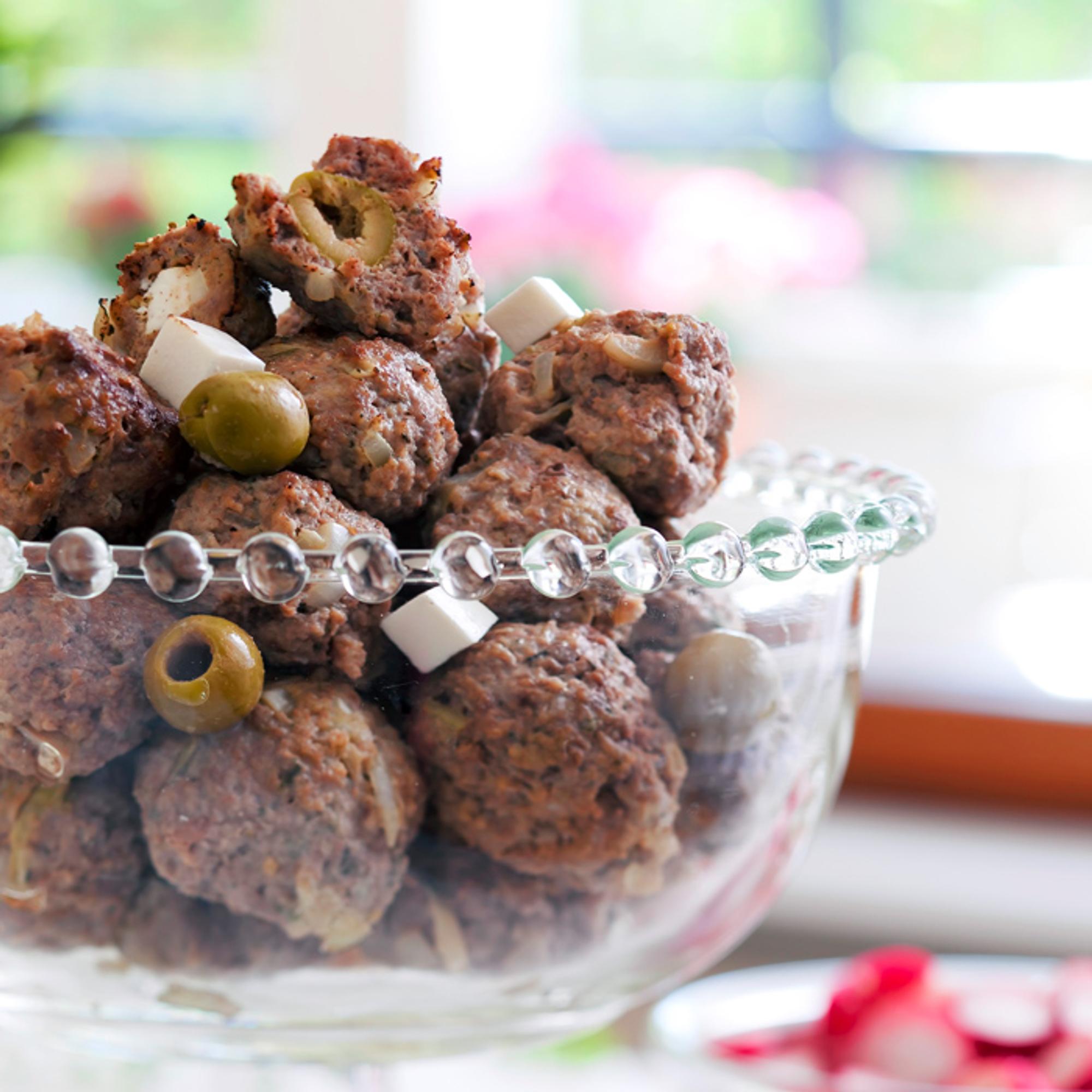 Nämä mehevät lihapullat kätkevät sisälleen yllätyksen, nimittäin feta-oliivitäytteen! Maukkaat täytetyt minilihapullat sopivat hyvin esimerkiksi noutopöydässä tai piknikillä.