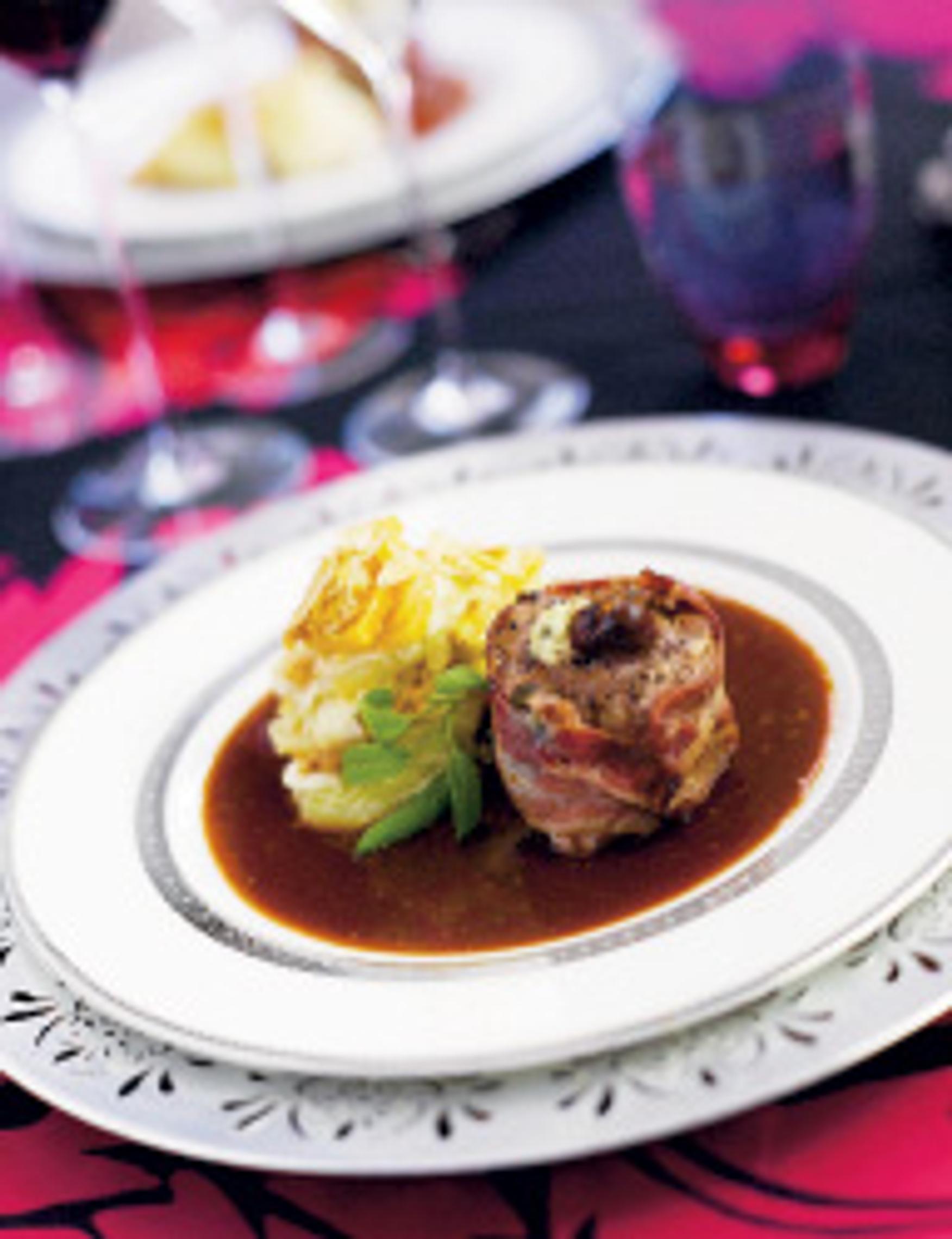 Täytetyt salvia-pekonipossut ovat tyylikäs tarjottava joulupöydässä. Suosittelemme!