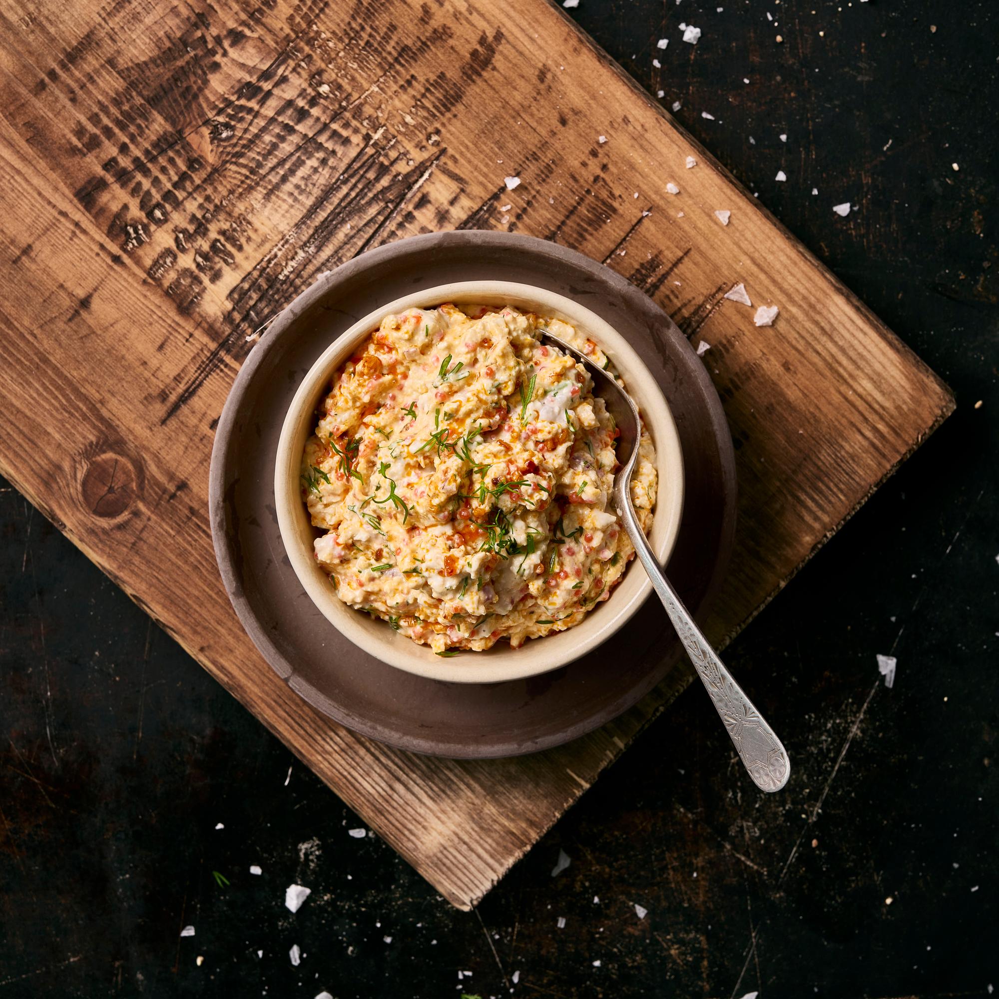 Tofuskagen sekoitetaan maukkaasta savutofusta ja mätiä muistuttavasta merilevävalmisteesta. Rapea chili tuo tahnaan purutuntumaa ja sopivasti chilin poltetta.