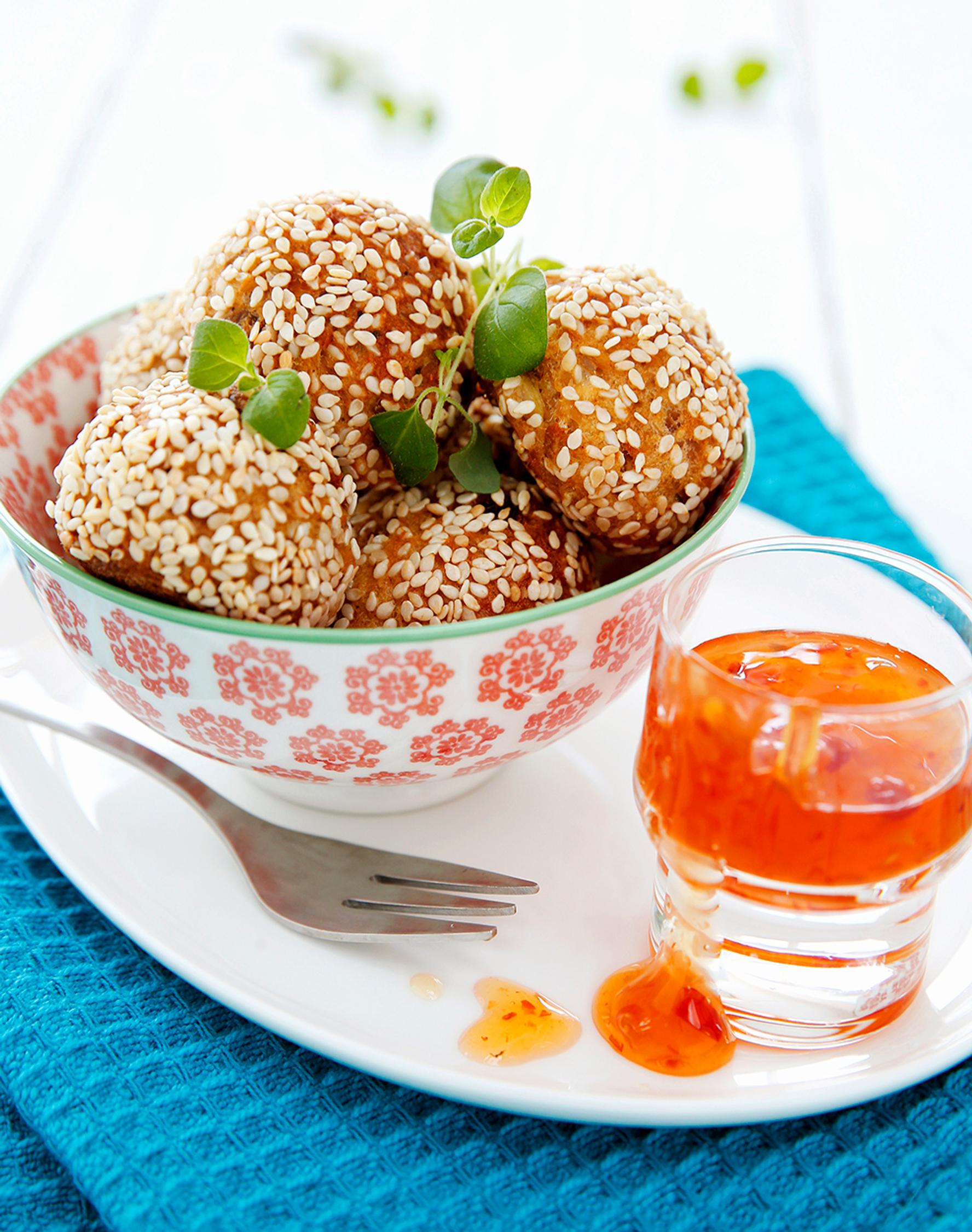 Tarjoa pyörykät makean chilikastikkeen ja halutessasi couscousin kanssa.