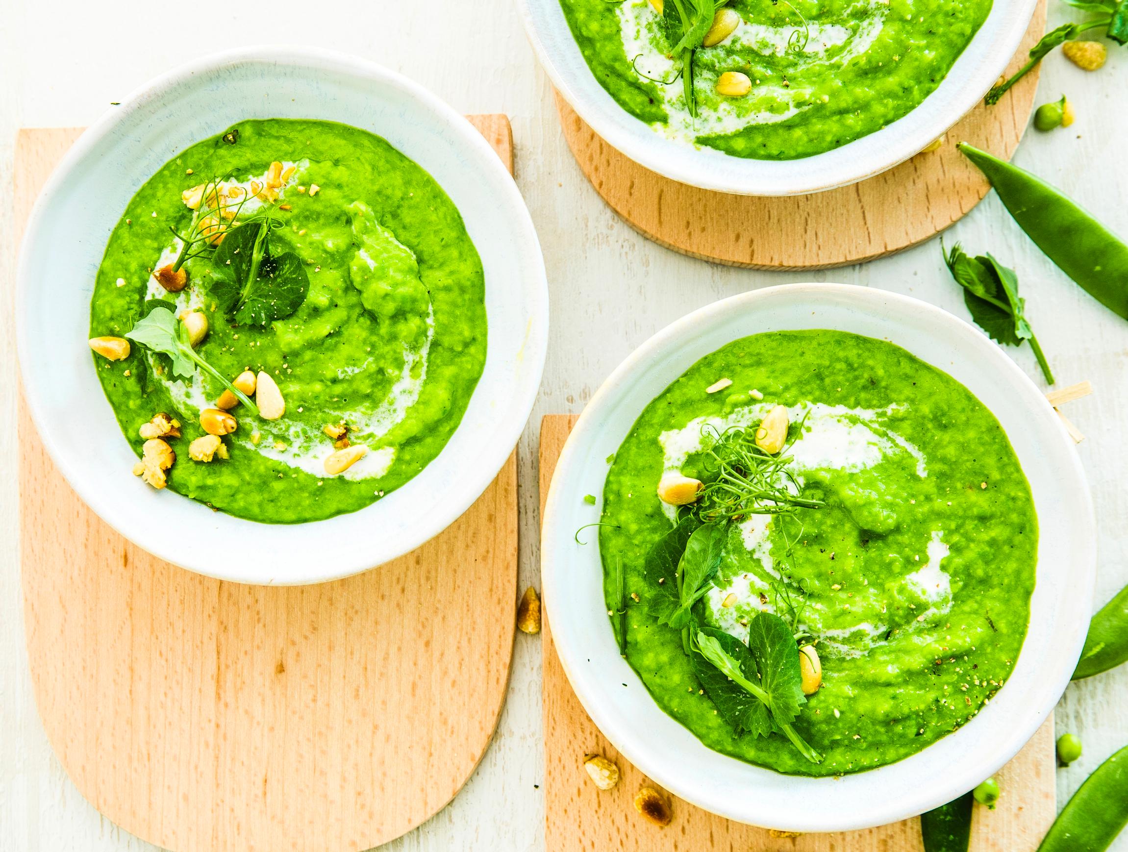 Tuorehernekeitto piristää vahvan vihreällä värillään! Vegaanisen tuorehernekeiton voit tarjota vieraillekin, kun koristelet pinnan pinjansiemenillä ja yrteillä. Halutessasi keittoon saa ylellisen sävyn kuohuviinillä.