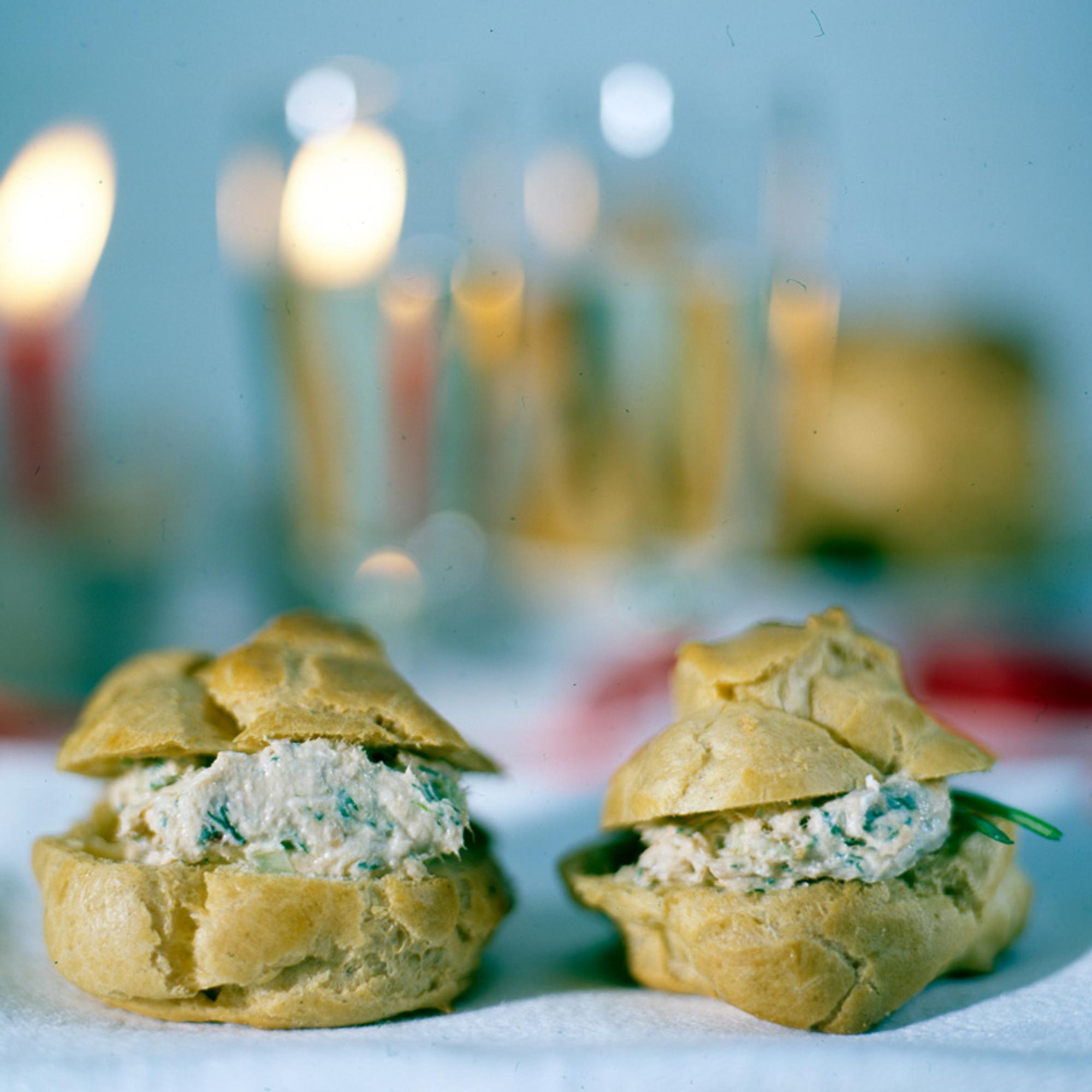 Paista tuulihattuja ensin noin 15 minuuttia. Laske lämpö sitten 175 asteeseen ja paista vielä noin 15 minuuttia, kunnes tuulihatut ovat rapeita. Mitä suurempia tuulihatut ovat, sitä kauemmin niitä täytyy paistaa. Täytä jäähtyneet tuulihatut savukalatäytteellä.