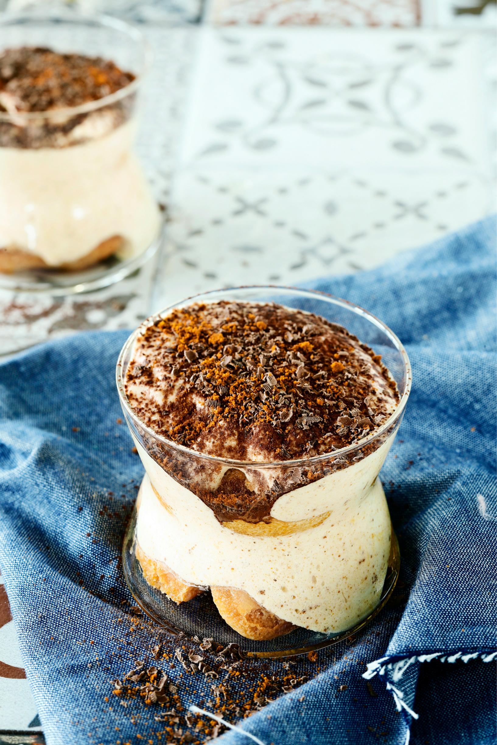 - 10Siivilöi tyrnitiramisun päälle kaakaojauhetta. Viimeistele hienoksi rouhitulla suklaalla.