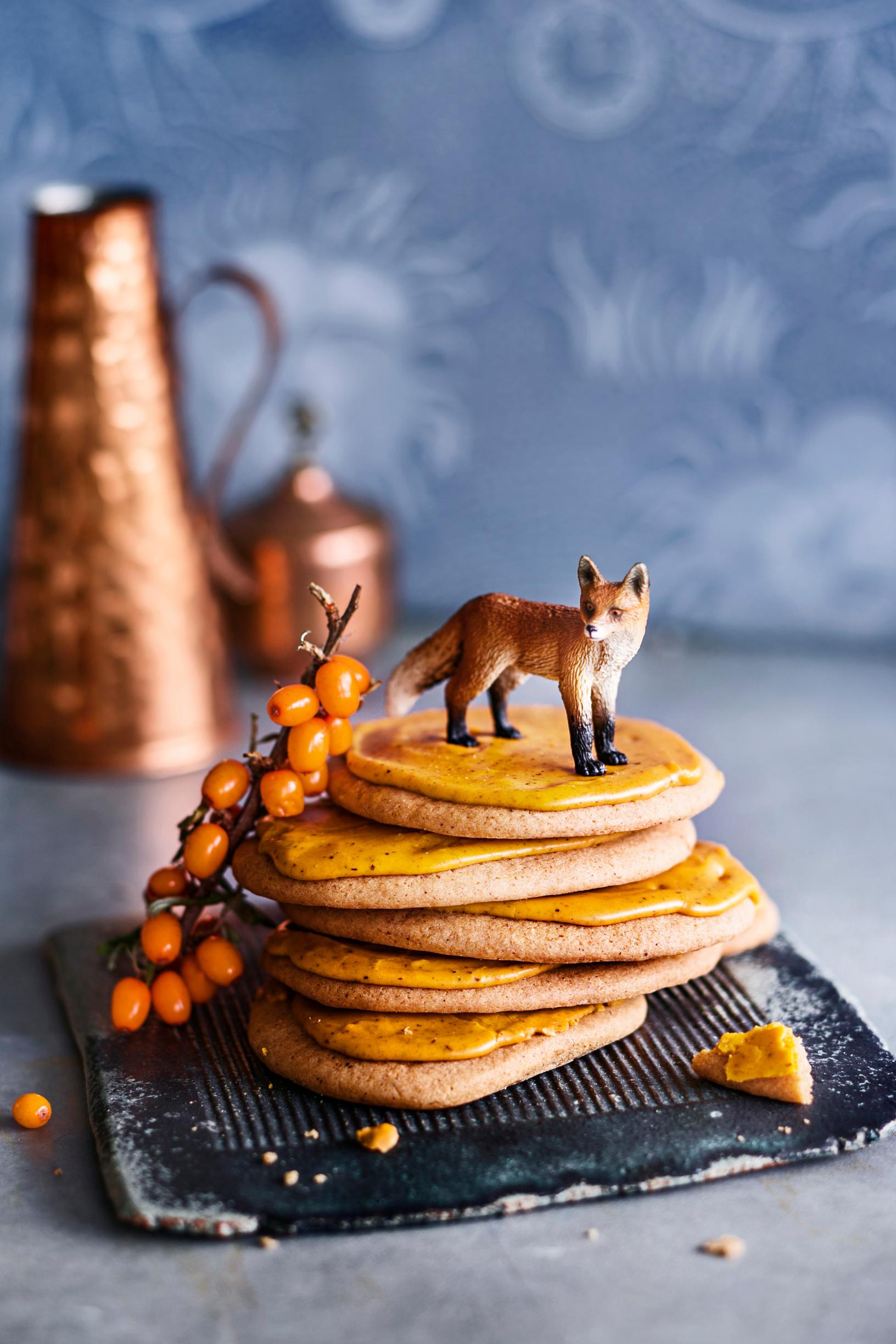 Veikeitä, sanoi kettu tyrnipumpernikkeleistä! Pehmeät pikkuleivät kuorrutetaan oransseiksi