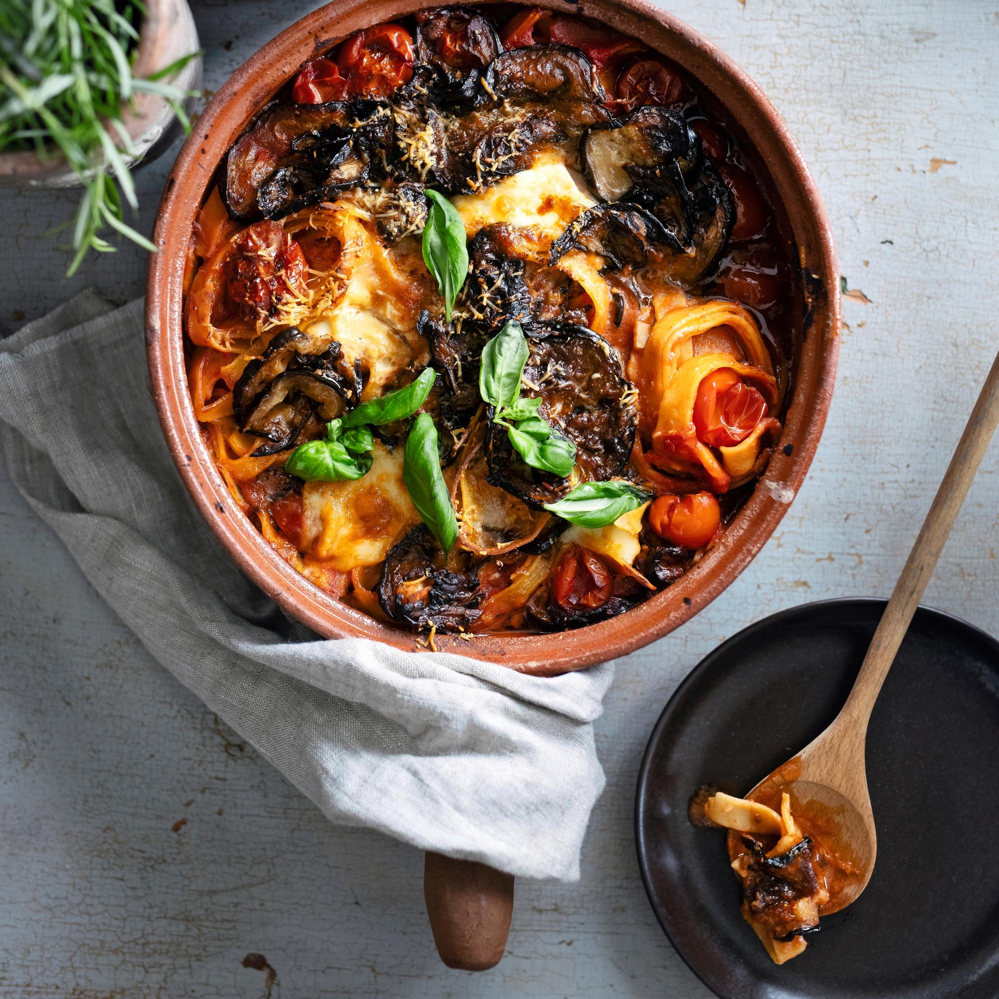 Tuttu mutta tuunattu! Uunipasta melanzane alla parmigiana viettelee munakoison, tomaattien ja tuorepastan yhdistelmällä